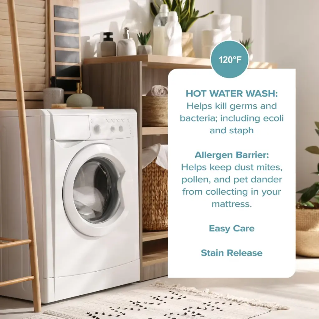 Elevate your sleep experience with our Waterproof Mattress Pad – the ultimate blend of comfort and protection for your bed! Designed to fit mattresses from 6” to 15” deep, this mattress pad features a fully elasticized deep fitted skirt that stays snugly in place. Our fiberfill quilted topper offers rejuvenating support, complete with an elegant diamond-stitched design to prevent fill from shifting. Stay cozy year-round with its soft, breathable fabric that provides the perfect balance of warmth and coolness. With a premium TPU layer, it shields against accidents and spills. Easy to care for, simply machine wash cold and tumble dry low.