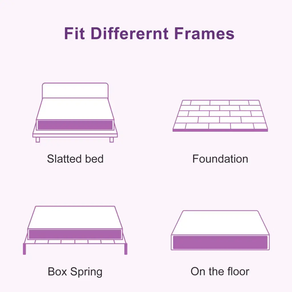 Merry Christmas! Wuleitex mattress to be efficiently compressed into one box for ultimate convenience. They fit all frames, such as box spring, floor, slatted base, flat platform or adjustable bed, hospital bed. Simply unbox, unroll and this mattress does the rest, expanding to its original shape within 72 hours.