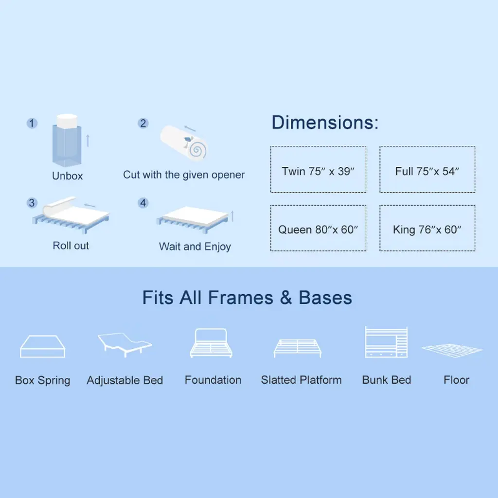 All mattresses are compressed and packed into compact cartons for fast shipping. After receiving the mattress, you only need to do a few steps to get and enjoy this comfortable mattress 1. Open the carton. 2. Separate the outer protective film with professional tools. 3. Wait for 24-72 hours to enjoy a comfortable mattress.