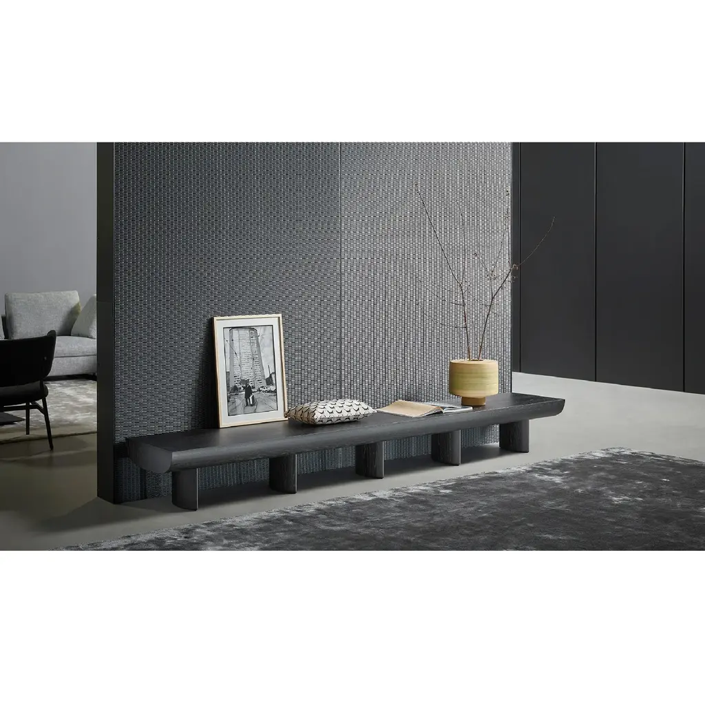 Designed by Alain Gilles, this TV stand is a piece with considerable impact even though it has a simple and linear design. Sculptural appears as a single wooden element supported by five legs which form the base. The surface develops in a downward arc while it has a cavity in the rear which is useful for concealing cables, thereby ensuring the maximum in aesthetic performance. Whether used as a TV stand or a design TV console, placed against a wall under the TV or in the living room in front of a sofa, Sculptural genuinely resembles a sculpture and this is the true stylistic hallmark of this design.