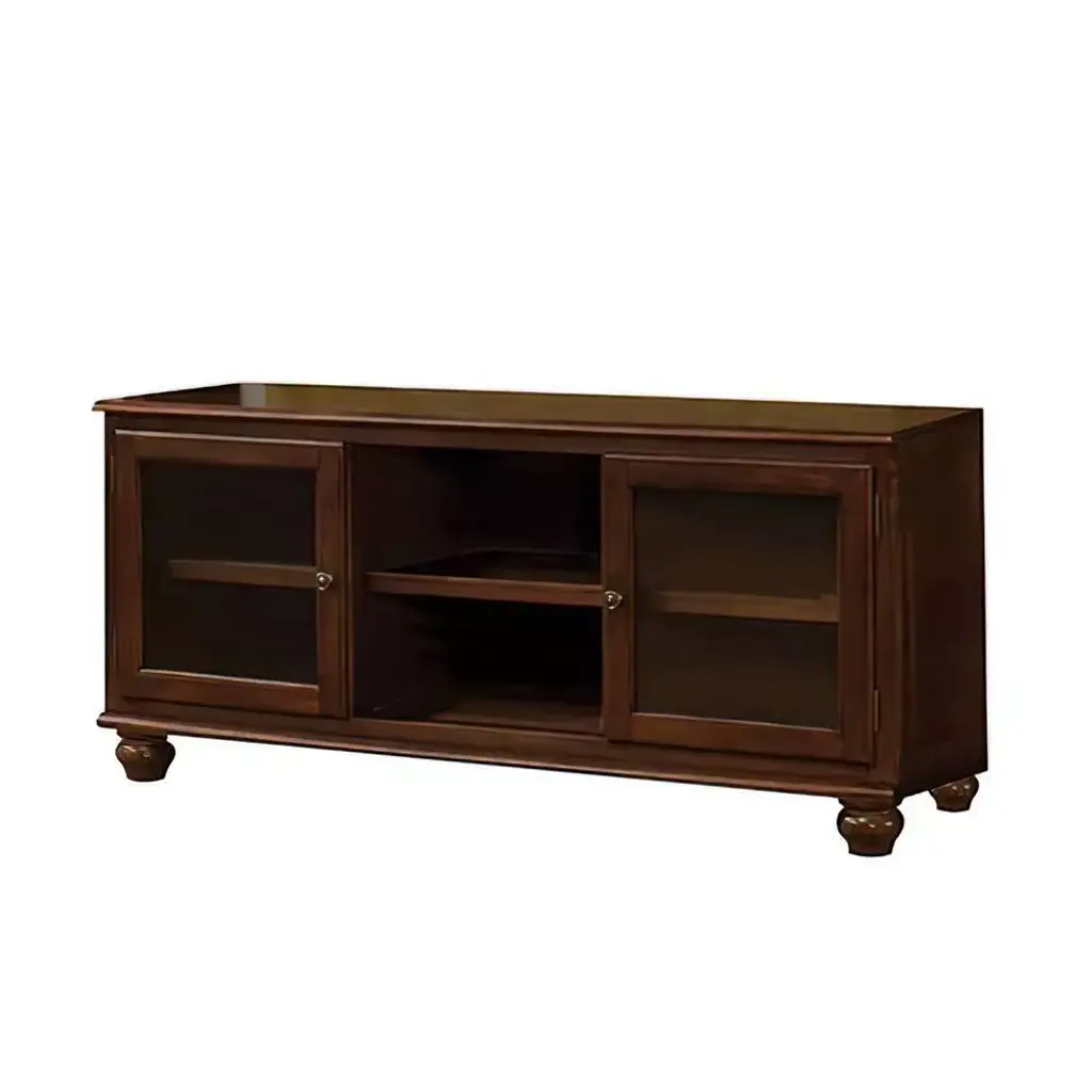 58" Dita Tv Stand For Tvs Up To 59" Walnut - Acme Furniture: Glass Doors, Open Compartments, No Assembly Required