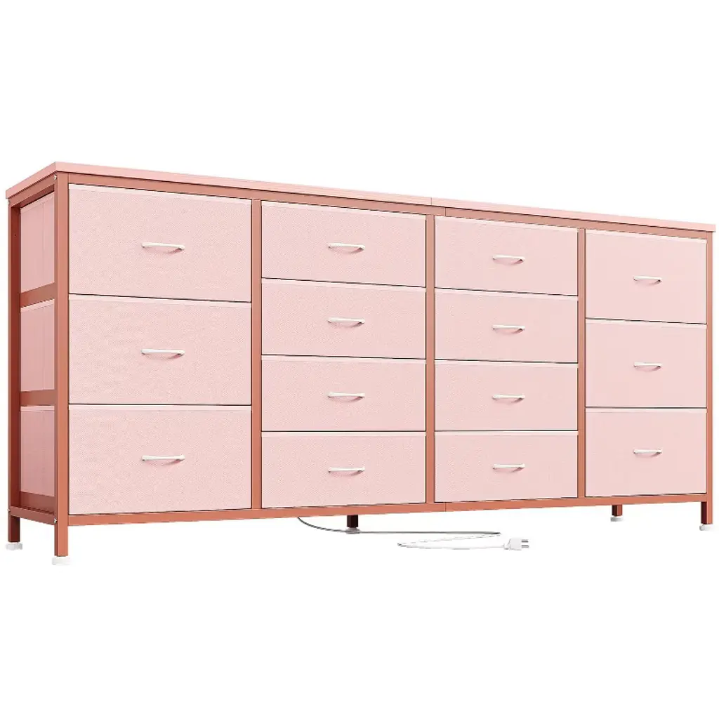 63" W Dresser Tv Stand for 65 70 75 Inch Tv, 14 Drawer for Bedroom with Power Outlets, Large Long Fabric Dresser Entertainment Center