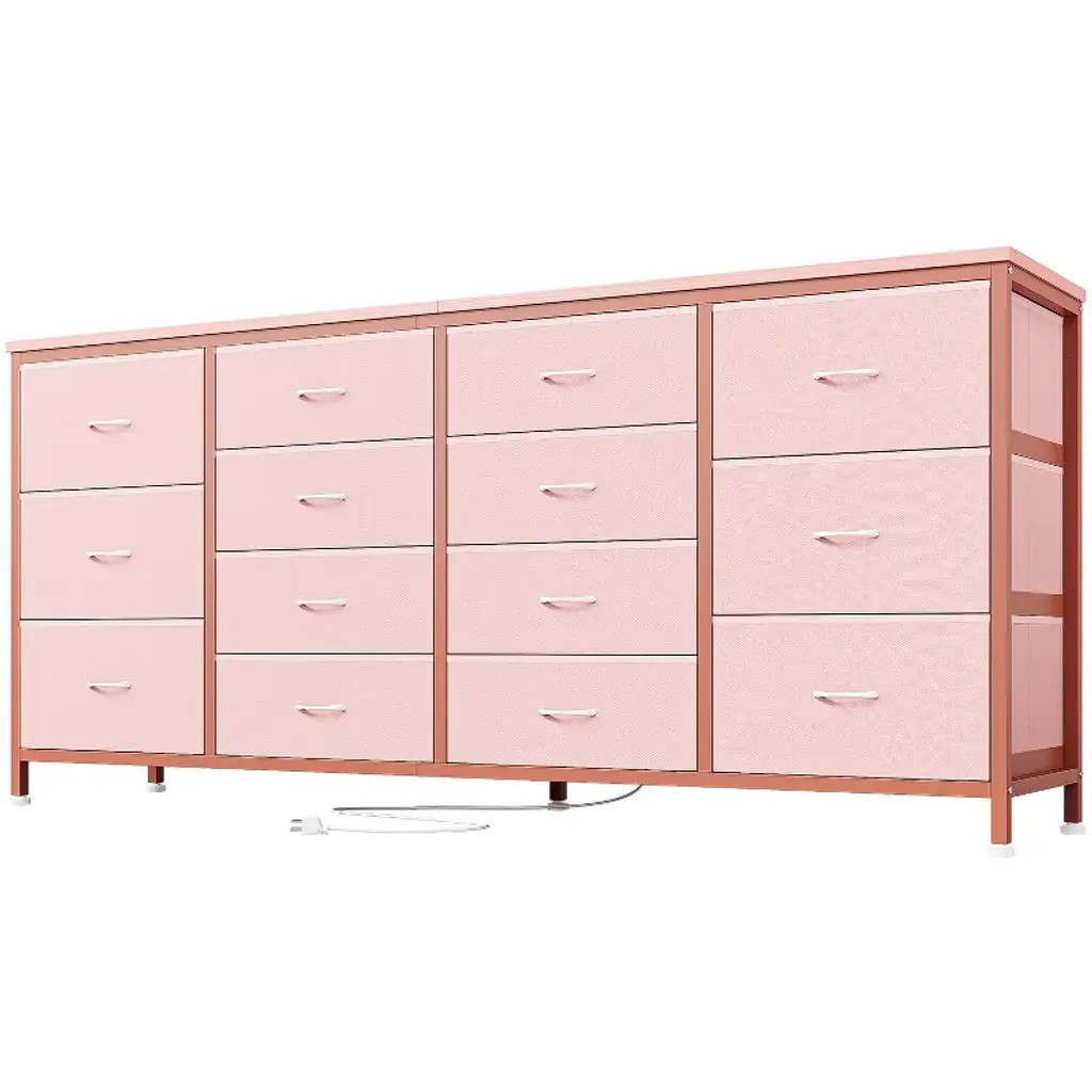 63" W Dresser Tv Stand For 65 70 75 Inch Tv, 14 Drawer For Bedroom With Power Outlets, Large Long Fabric Dresser Entertainment Center