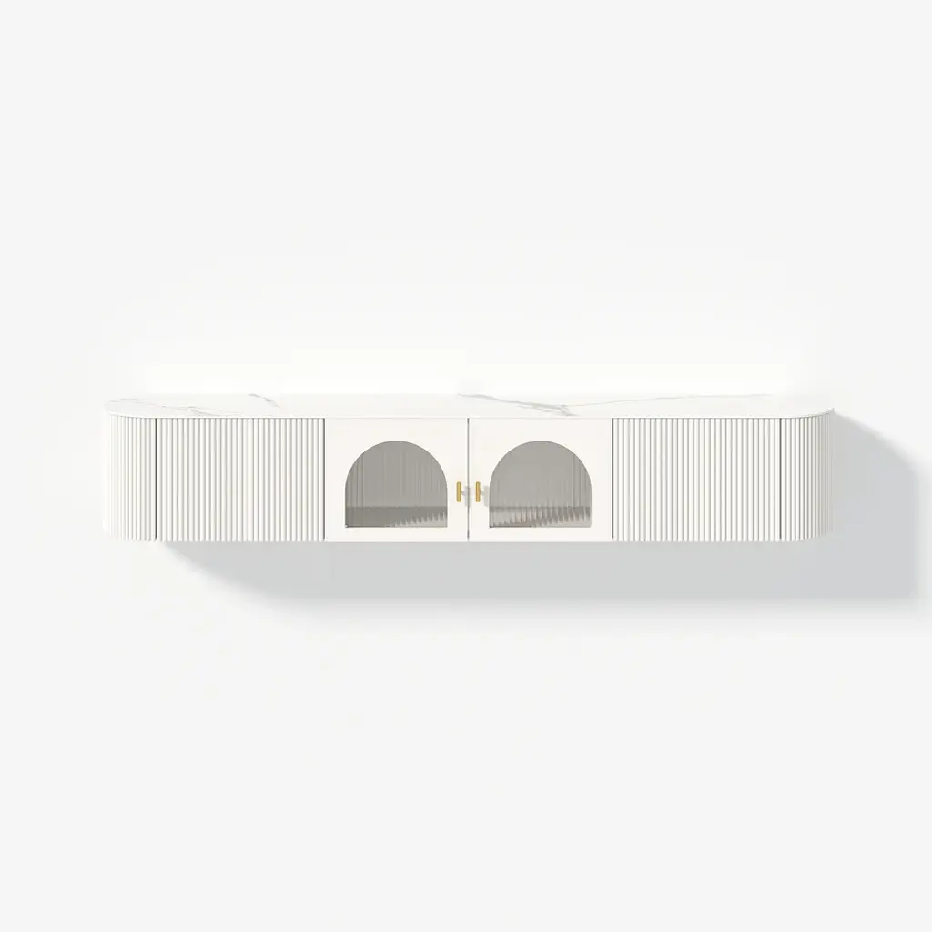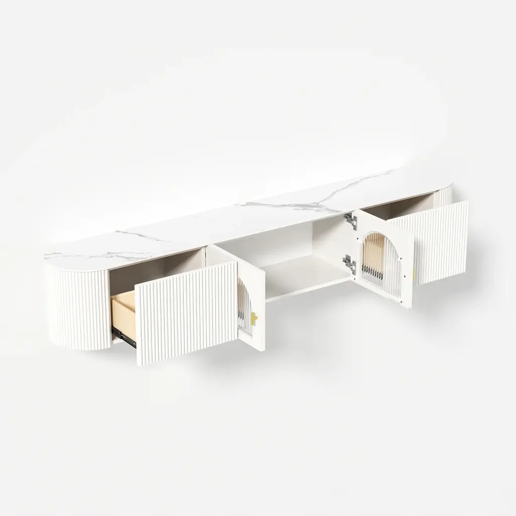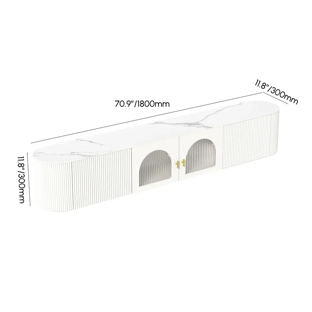 70.8" White Sintered Stone Floating Wall-Mounted Tv Stand