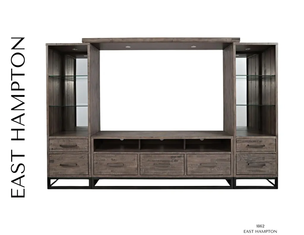 From the Manufacturer Jofran's East Hampton collection is an attractive balance of natural and industrial materials. Distressed wood tops with solid metal bases create a look that is easily at home in living spaces. Media and occasional solutions offer plenty of open and closed storage solutions to make your space comfortable and attractive.