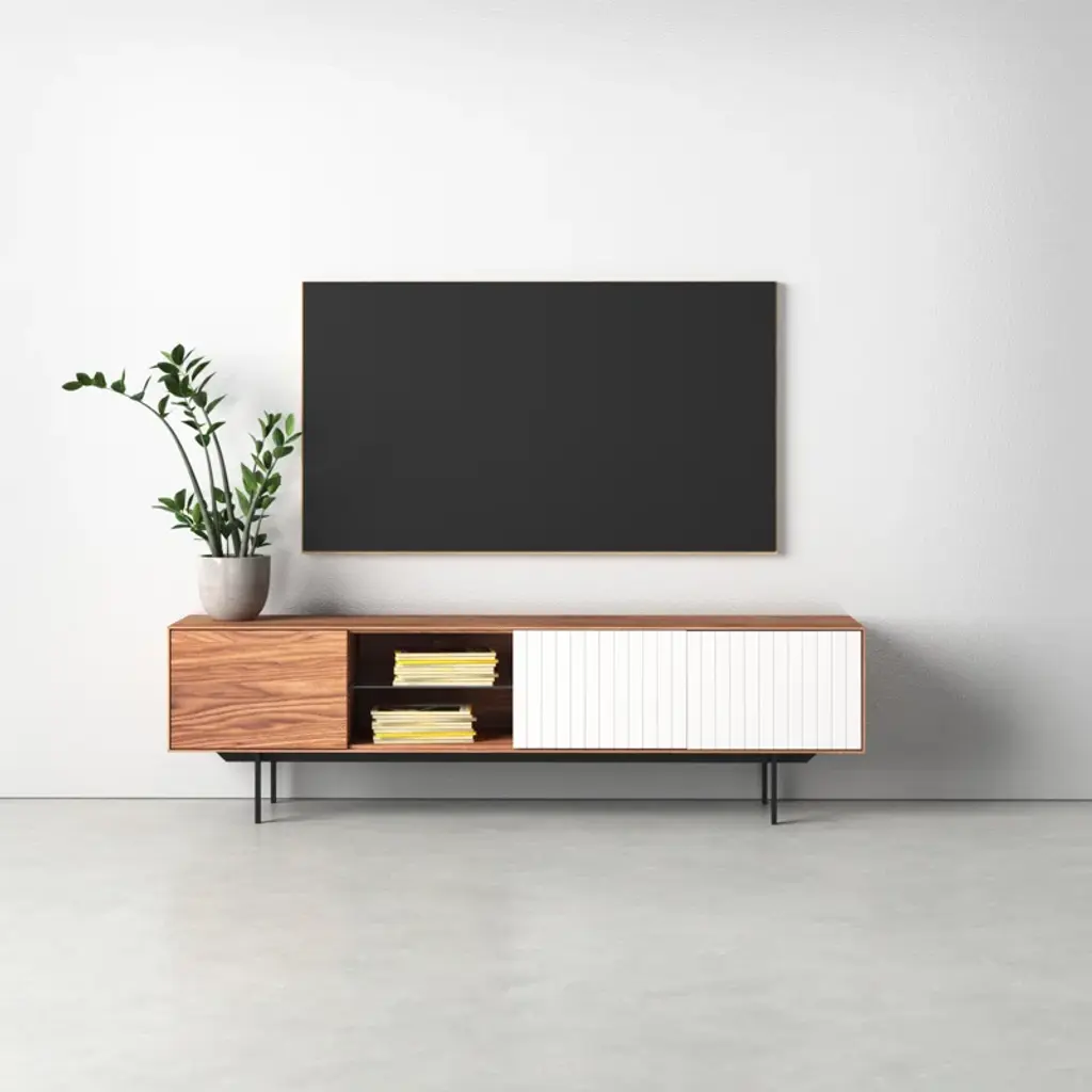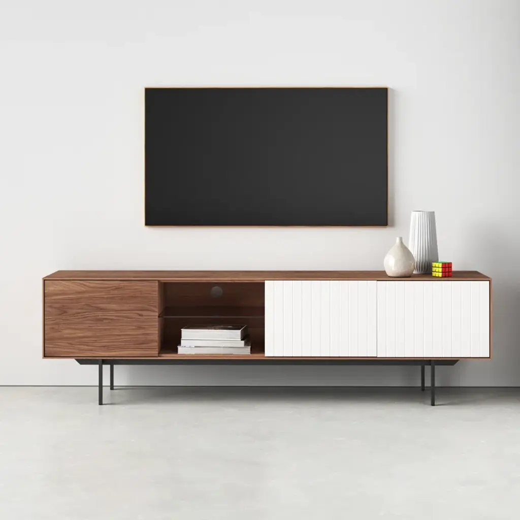 The Norna Media Stand is as sleek and modern as it is practical. Skillfully designed to blend perfectly into minimalist or contemporary environments. Cleverly equipped to maximize storage space.