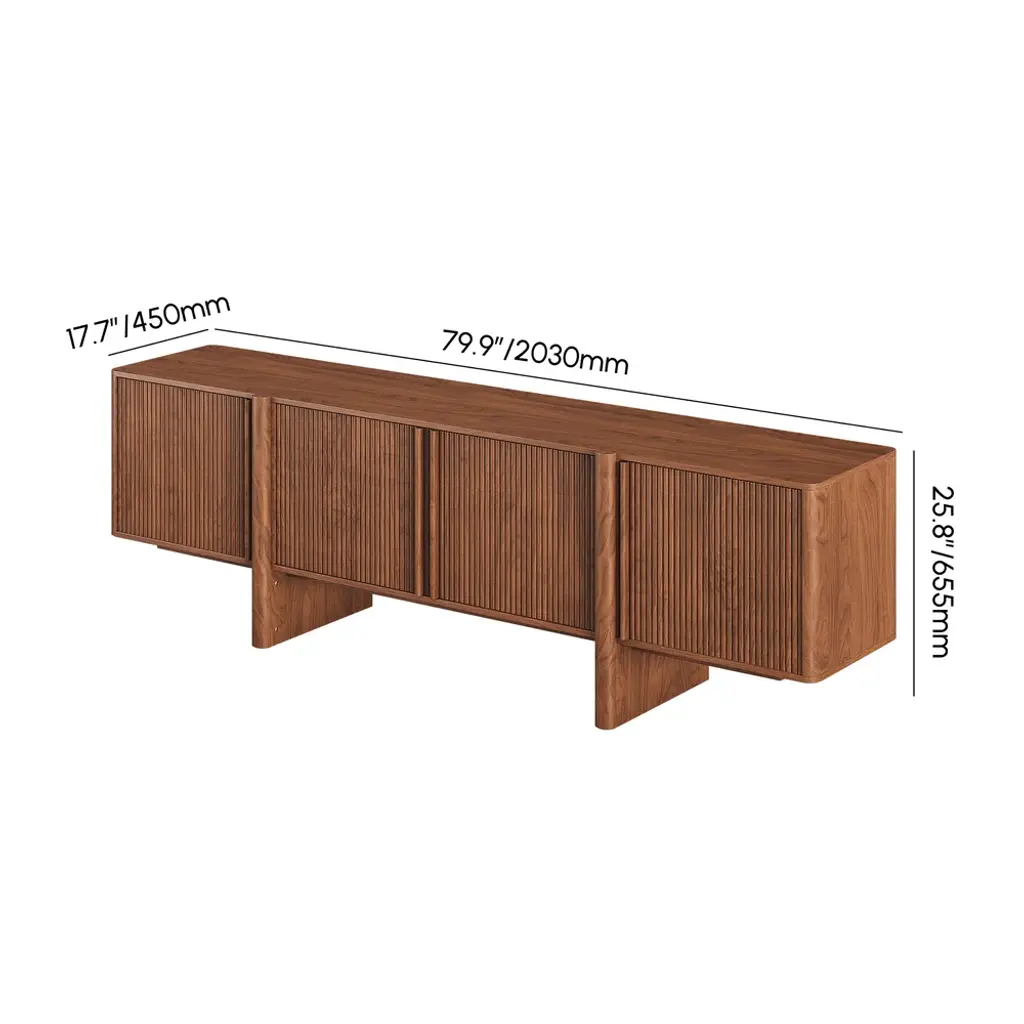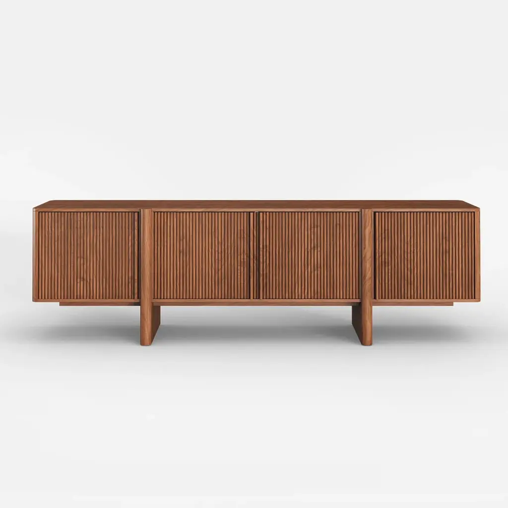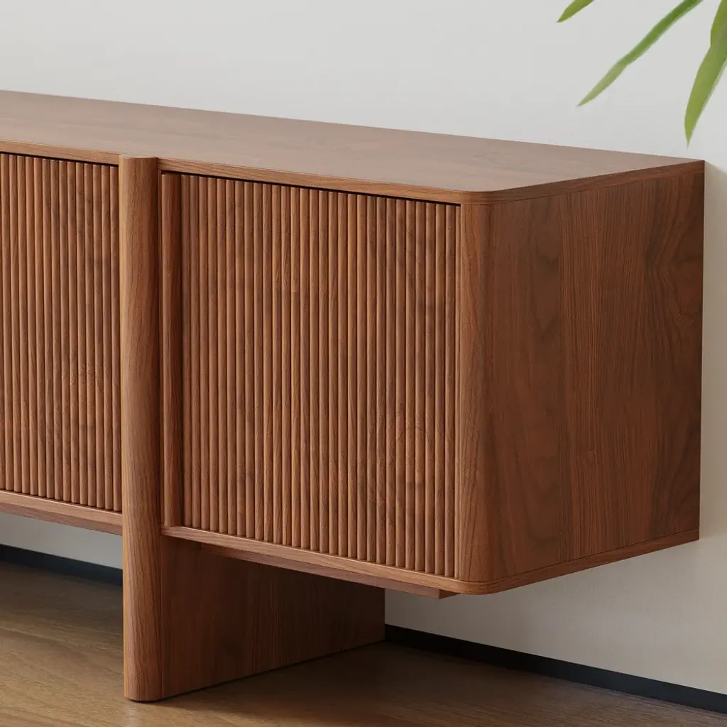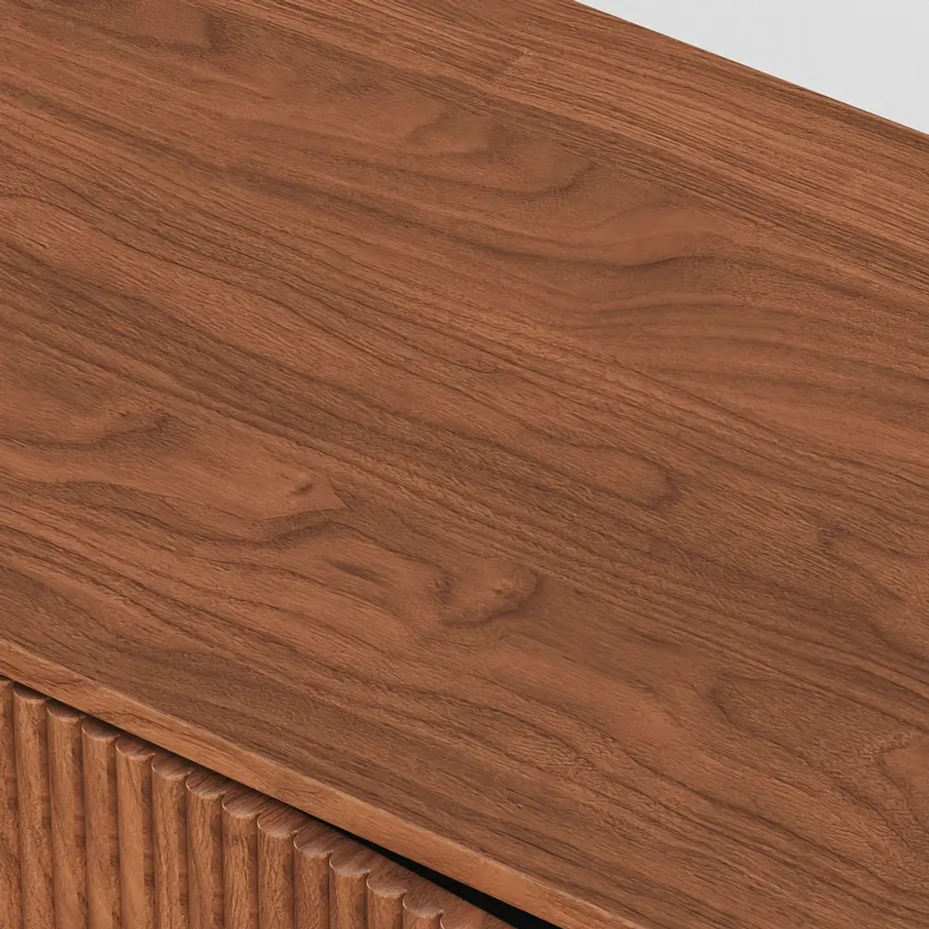 Bring timeless style to your living space with this elegant TV stand. Featuring solid ash wood slatted doors and a walnut-veneered engineered wood body, it offers a perfect blend of texture and durability. A refined centerpiece with functional charm.