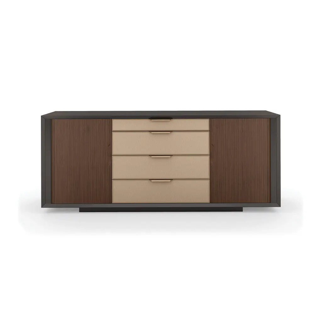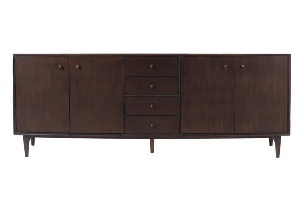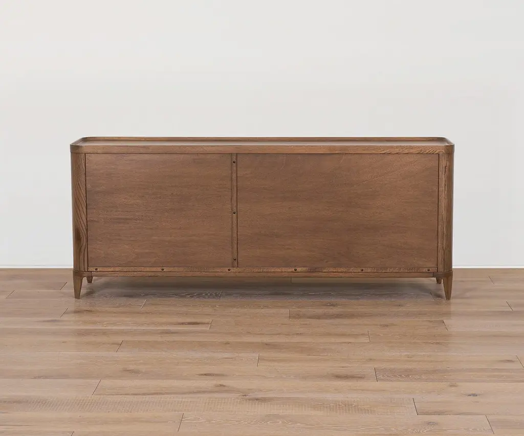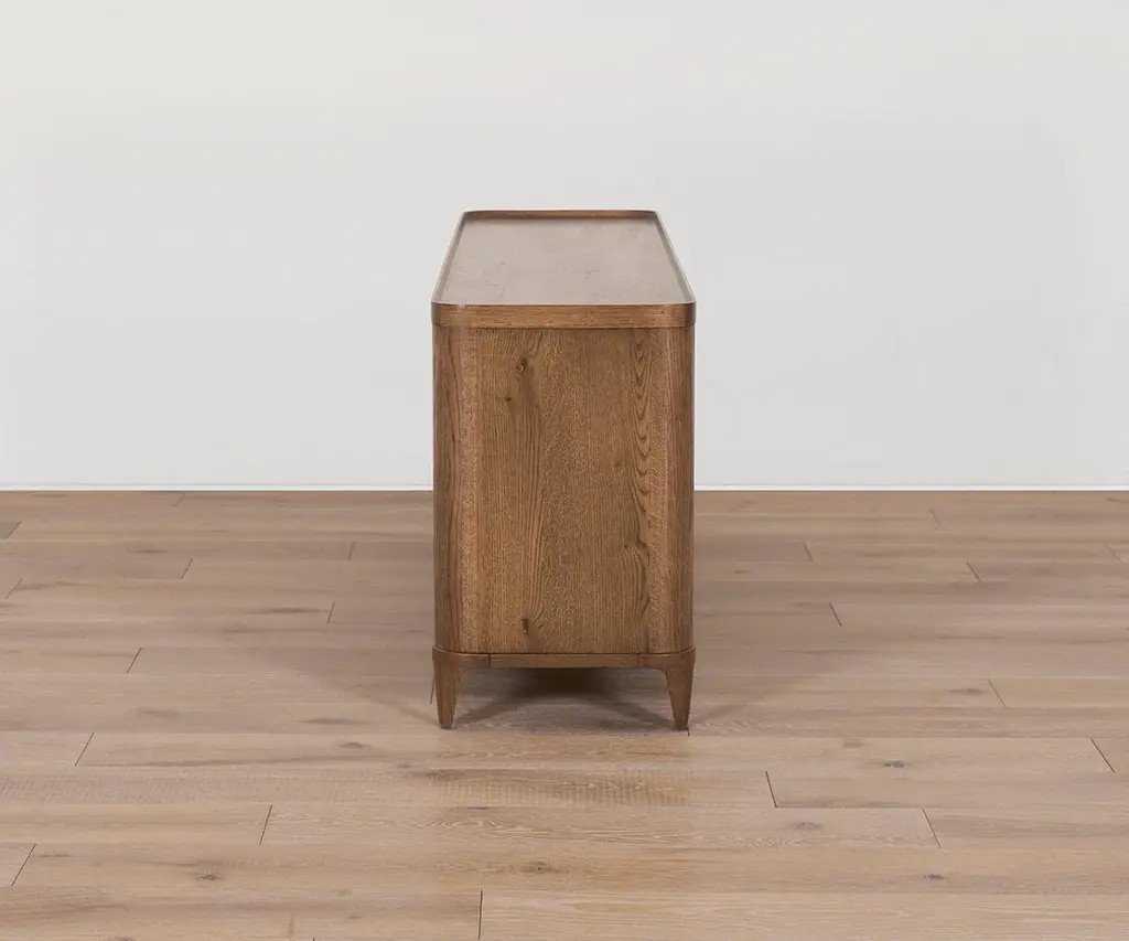 Crafted from solid oak with a beautiful dark finish, the mid-century Aden Media Stand features a versatile design that's rounded at the edges for a softer, sleeker look. Other enhancements include drawer pulls that pop in and out to maintain a minimalist profile, a unique lip around the top edge, and soft-close drawers and doors to protect fingers and contents. Mix and match it with other pieces in the Aden Collection to create a stylish, complementary set.