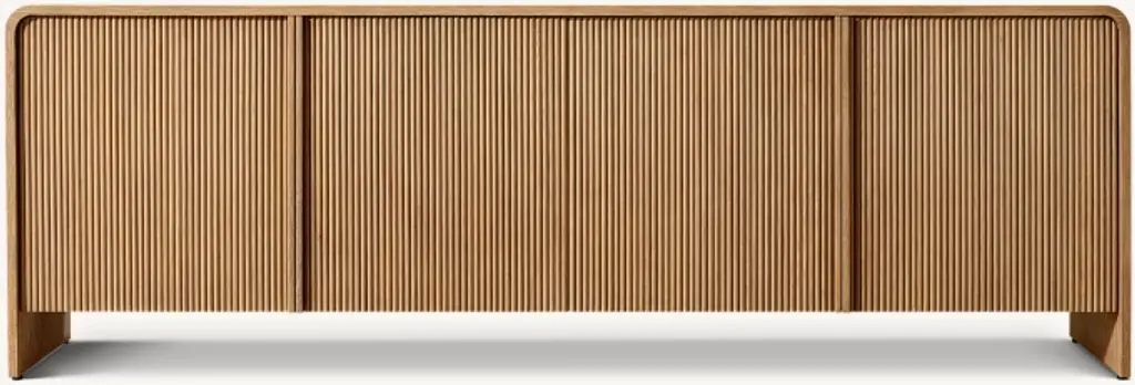 Artisan crafted of American white oak, Alora by California designer Lindye Galloway is a dynamic blend of sleek planes and radius curves. Smooth waterfall edges and a wire-brushed finish highlight the frame's continuous woodgrain pattern, while vertical solid oak reeding adds a textural counterpoint. SHOP THE ENTIRE COLLECTIONEXPLORE ALL REEDED COLLECTIONS