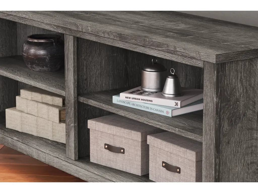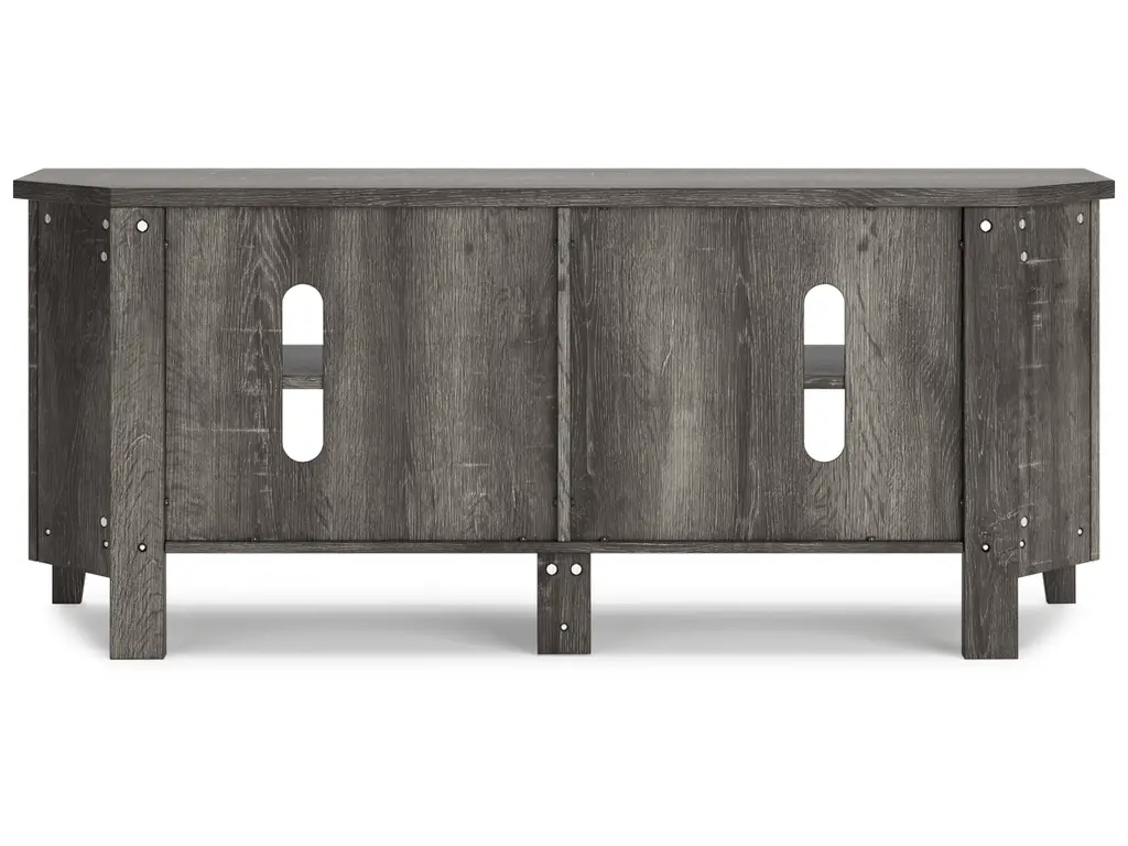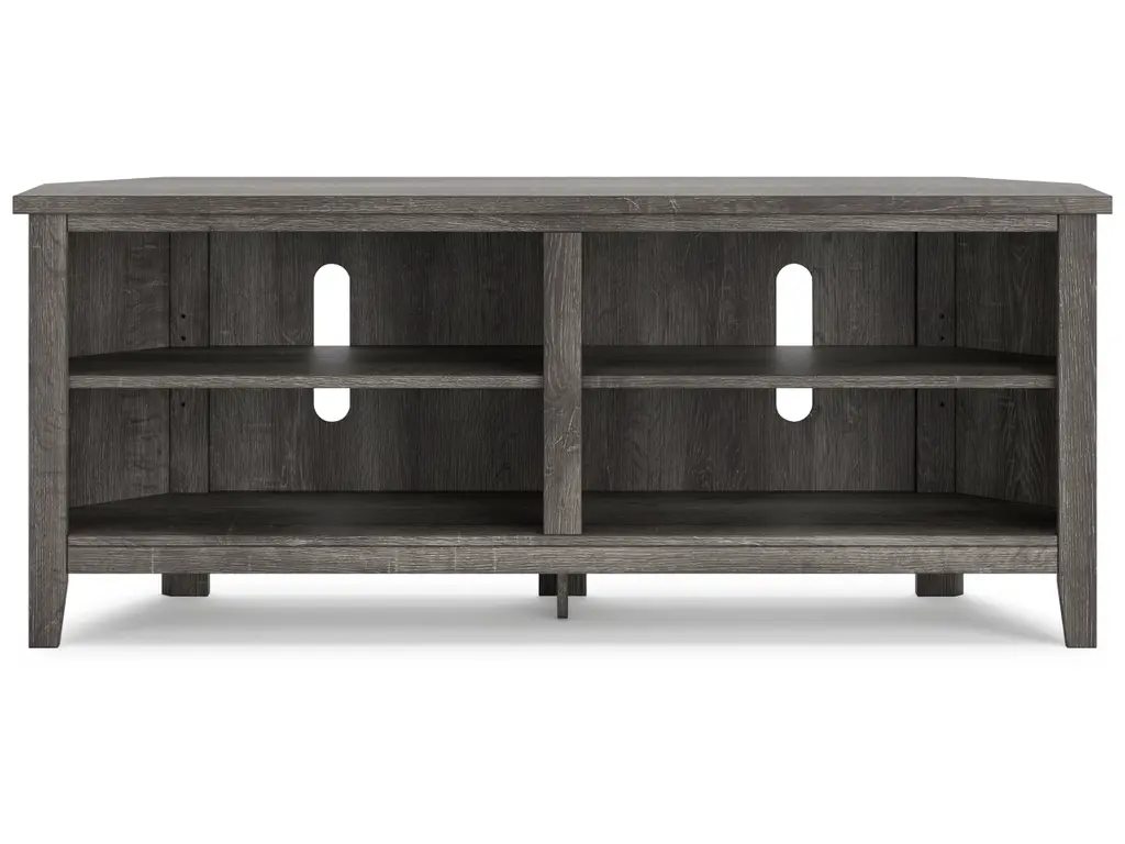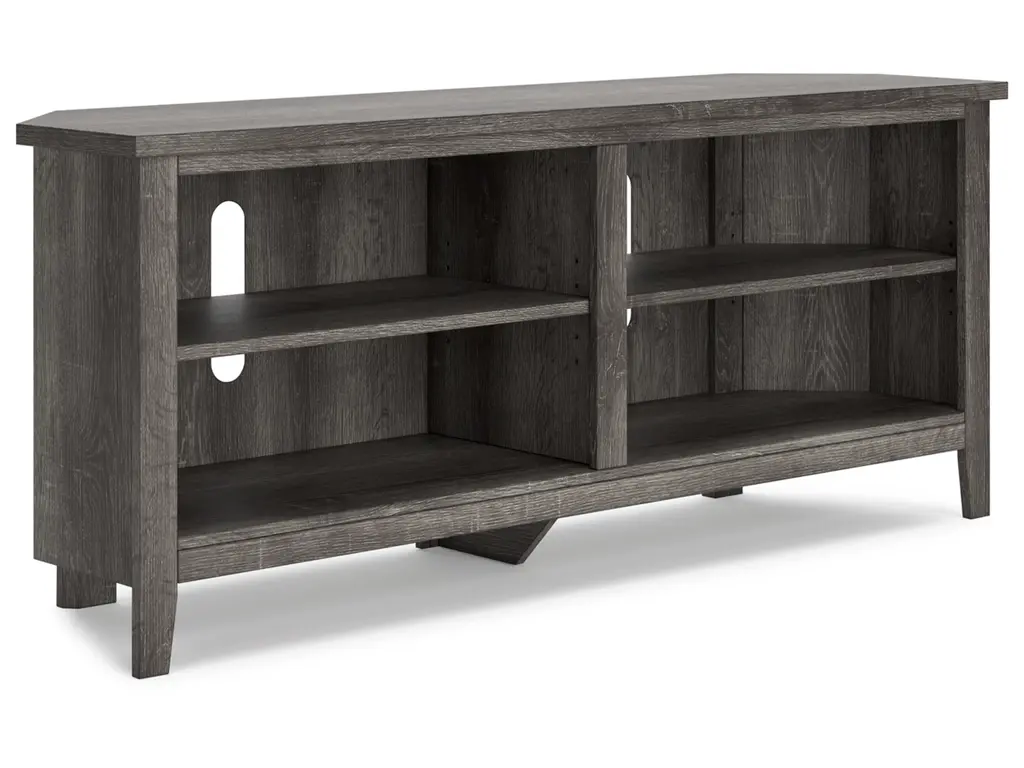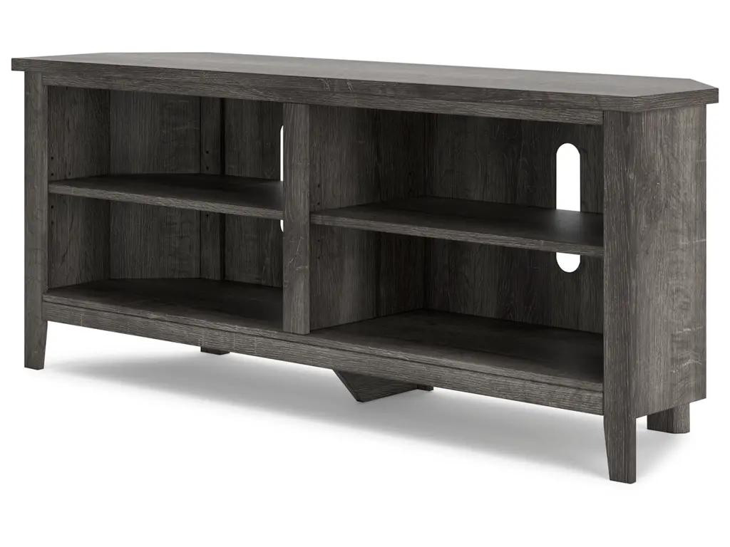 With its replicated weathered oak finish and authentic charm, the Arlenbry corner TV stand is right in tune with your relaxed approach to high style. Beautifully shaped to nestle into any corner, it’s well equipped with shelving and cutouts for wire management. What a mastery in modern farmhouse living for small spaces.