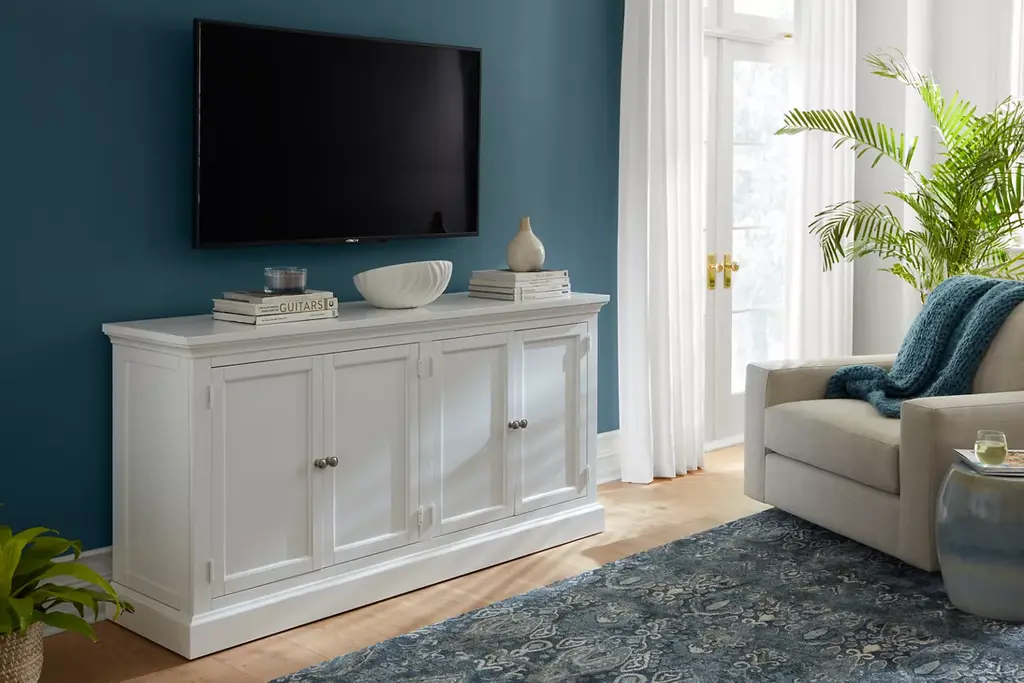 Sleek and compact, yet boasting ample storage and convenient wire management, our Arlington entertainment console is the ideal piece for a small space. Magnetic-closure doors and adjustable shelves allow you to stow entertainment essentials in a snap. Select our Arlington entertainment center for the same piece with a stylish hutch add-on.