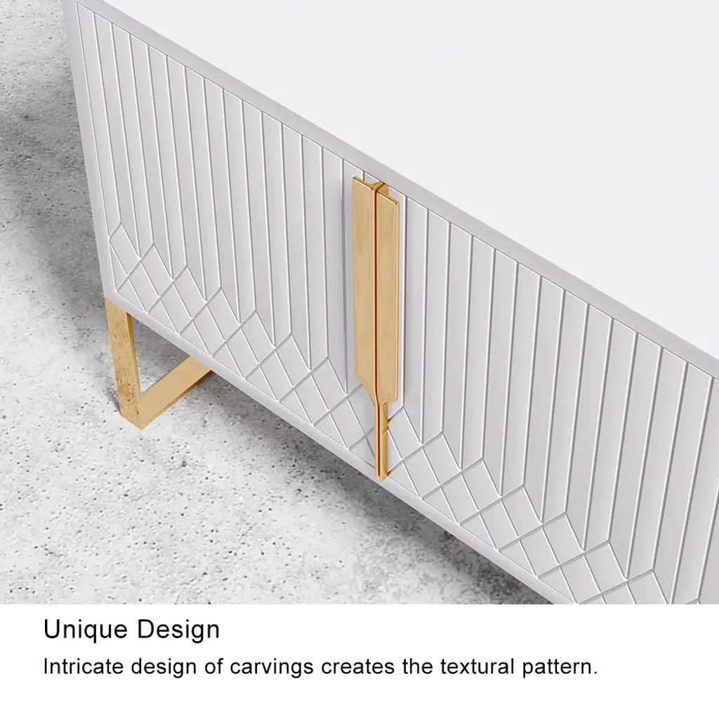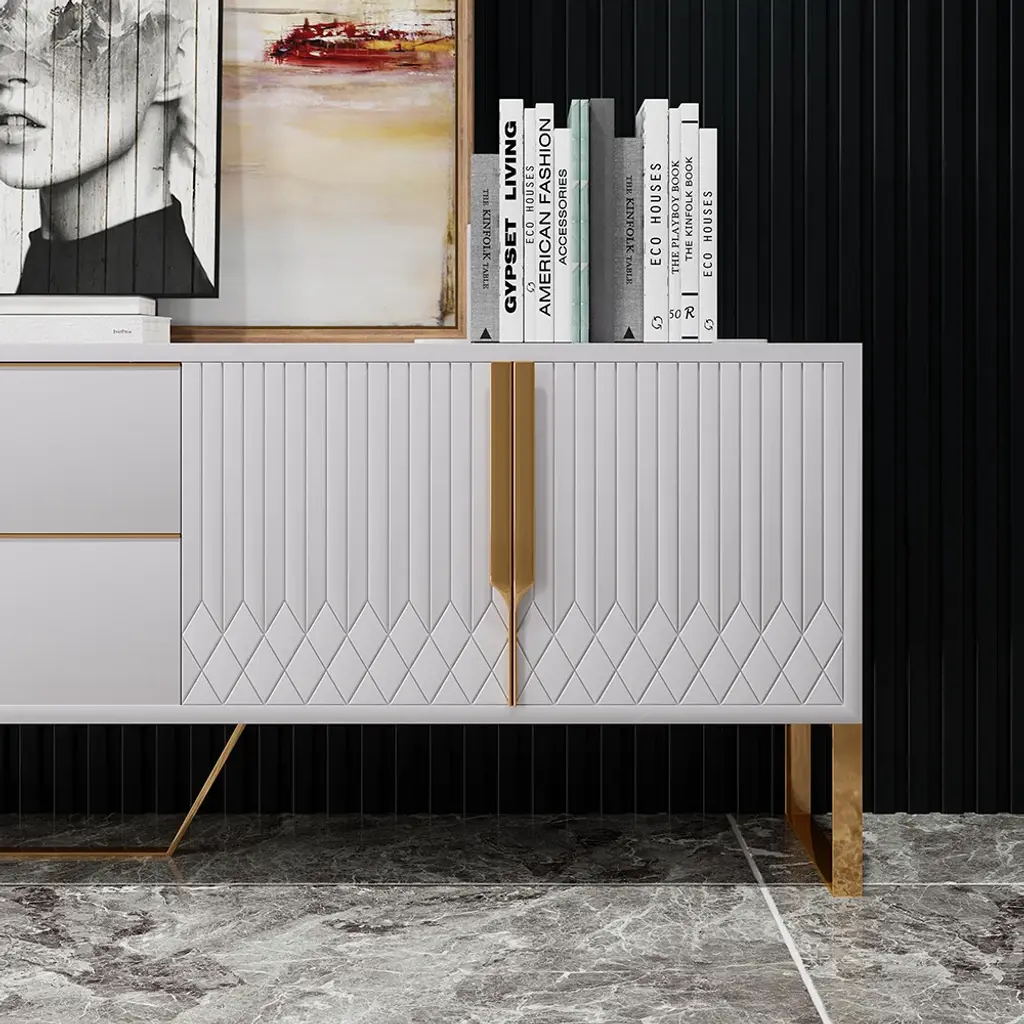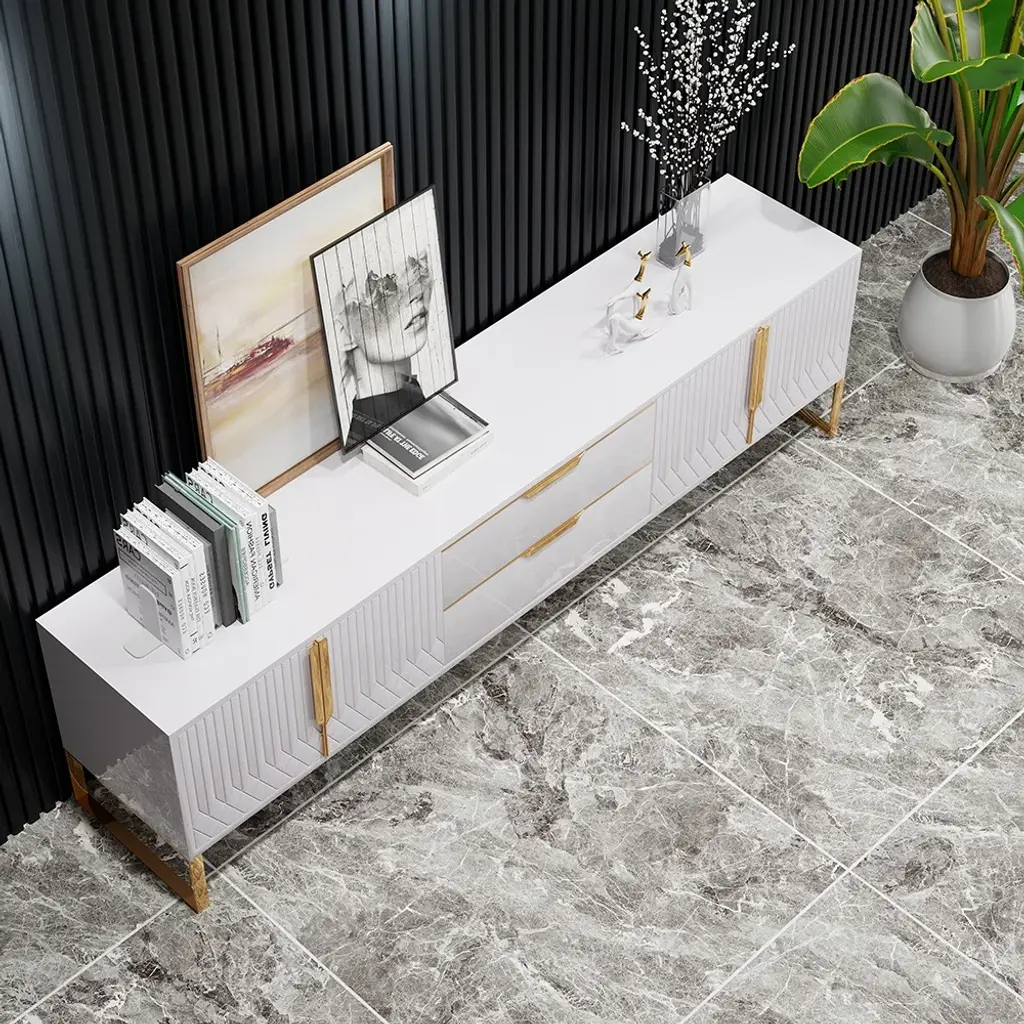 Aro Modern White Wood Tv Stand With 2 Drawers & 4 Doors Media Console For 80" Tvs