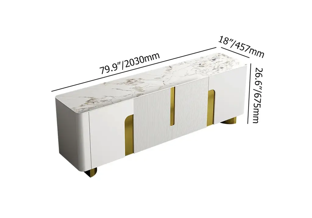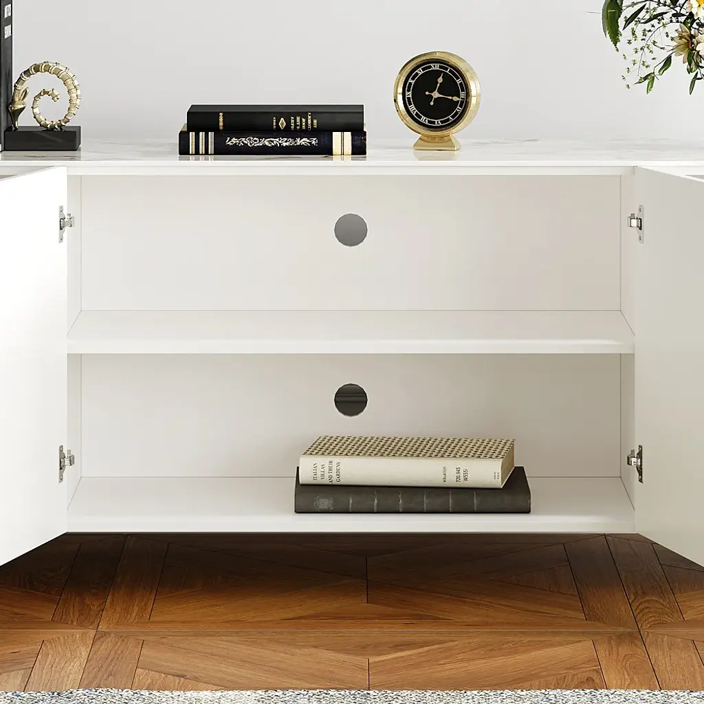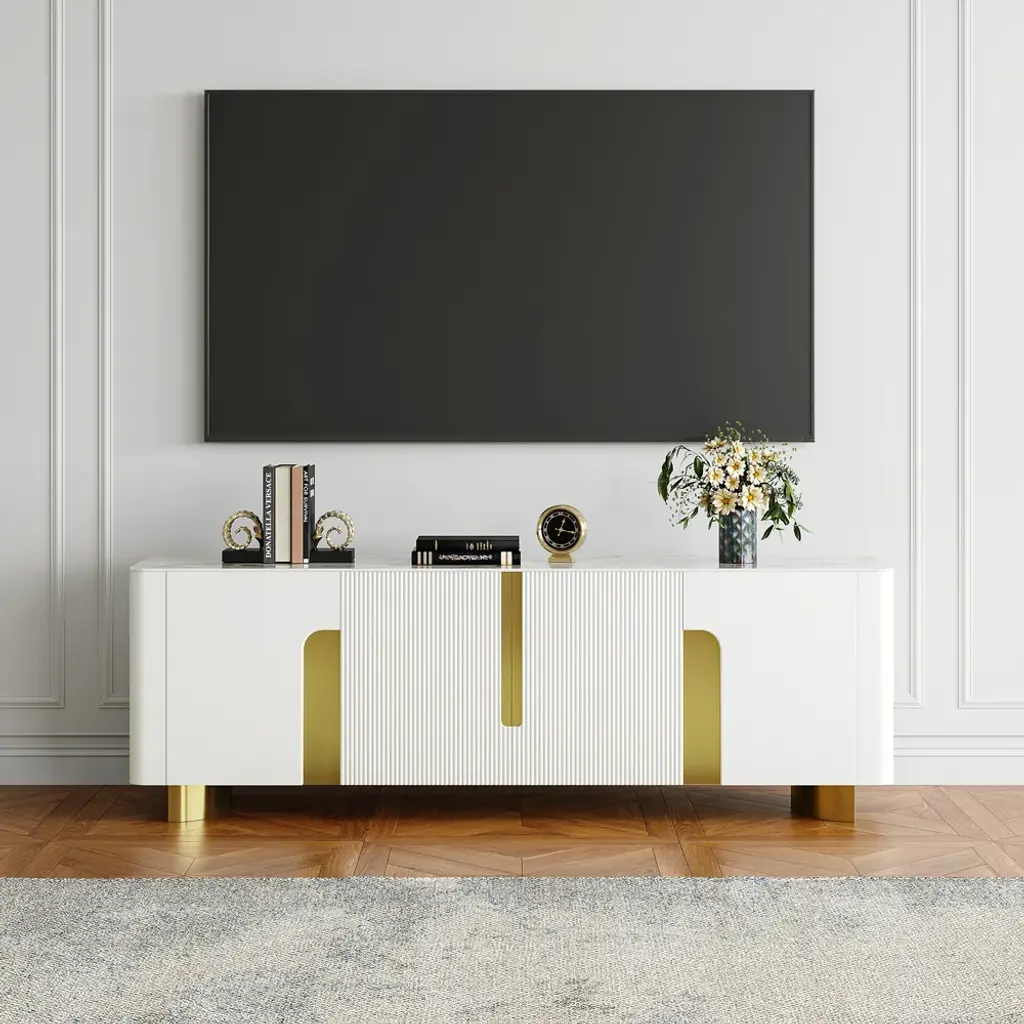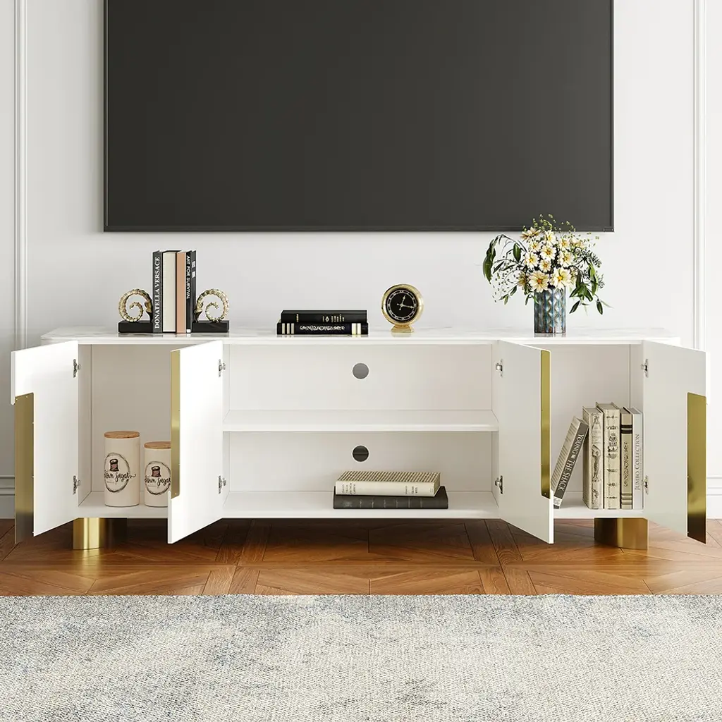 Artus Modern Beige Tv Stand Stone Top 4 Doors With Storage Media Console Tvs Up To 85"