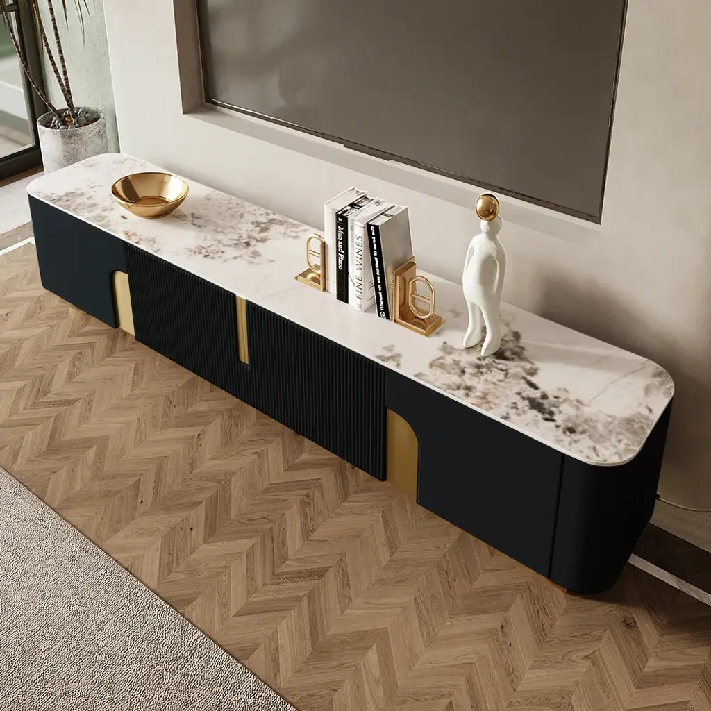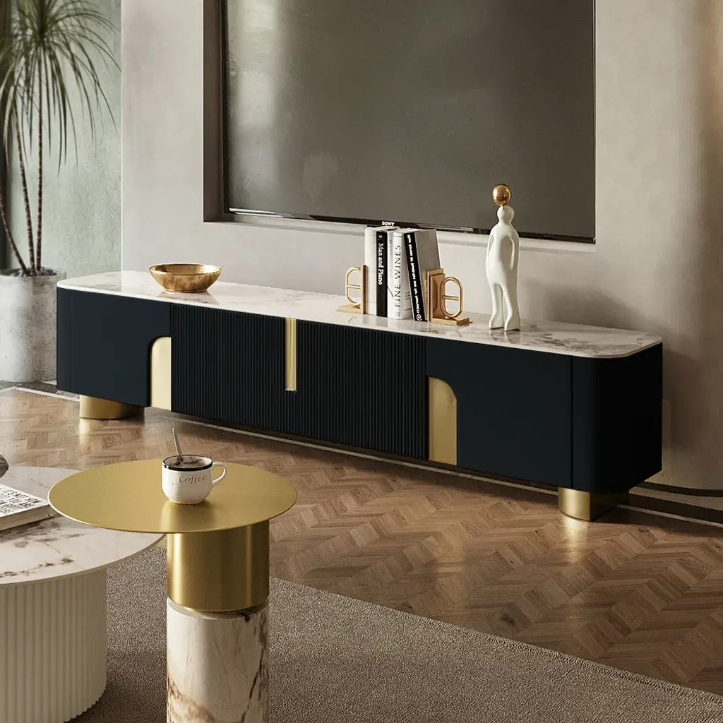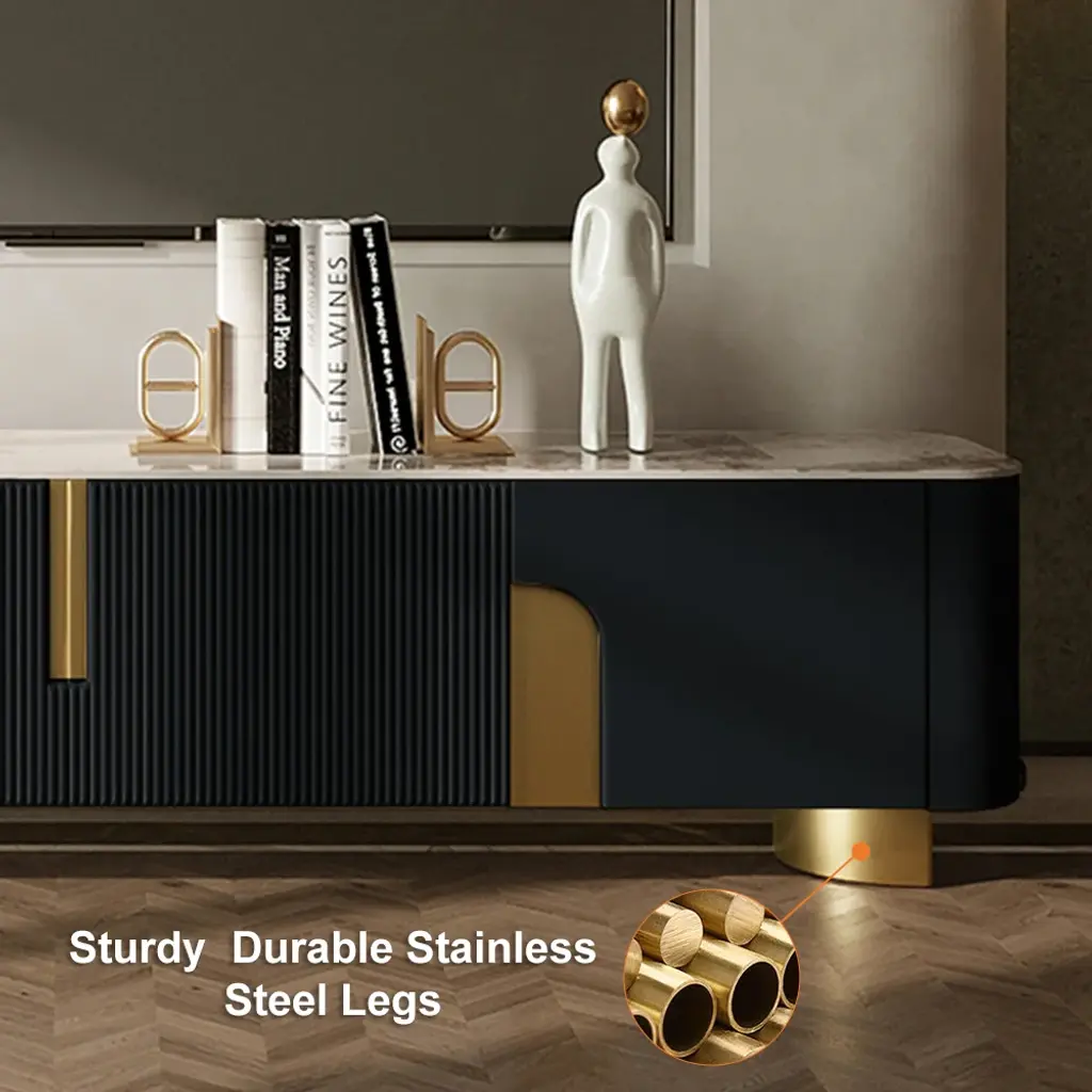 The Artus TV console combines premium sintered stone durability with smart storage. Slatted gold accents frame two 17.5" cabinets and a 34" center unit with shelve. Rounded edges and simple assembly make it both safe and effortless.