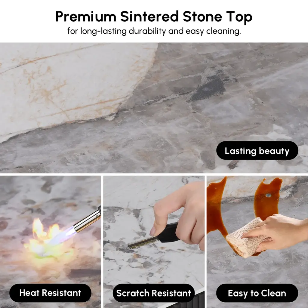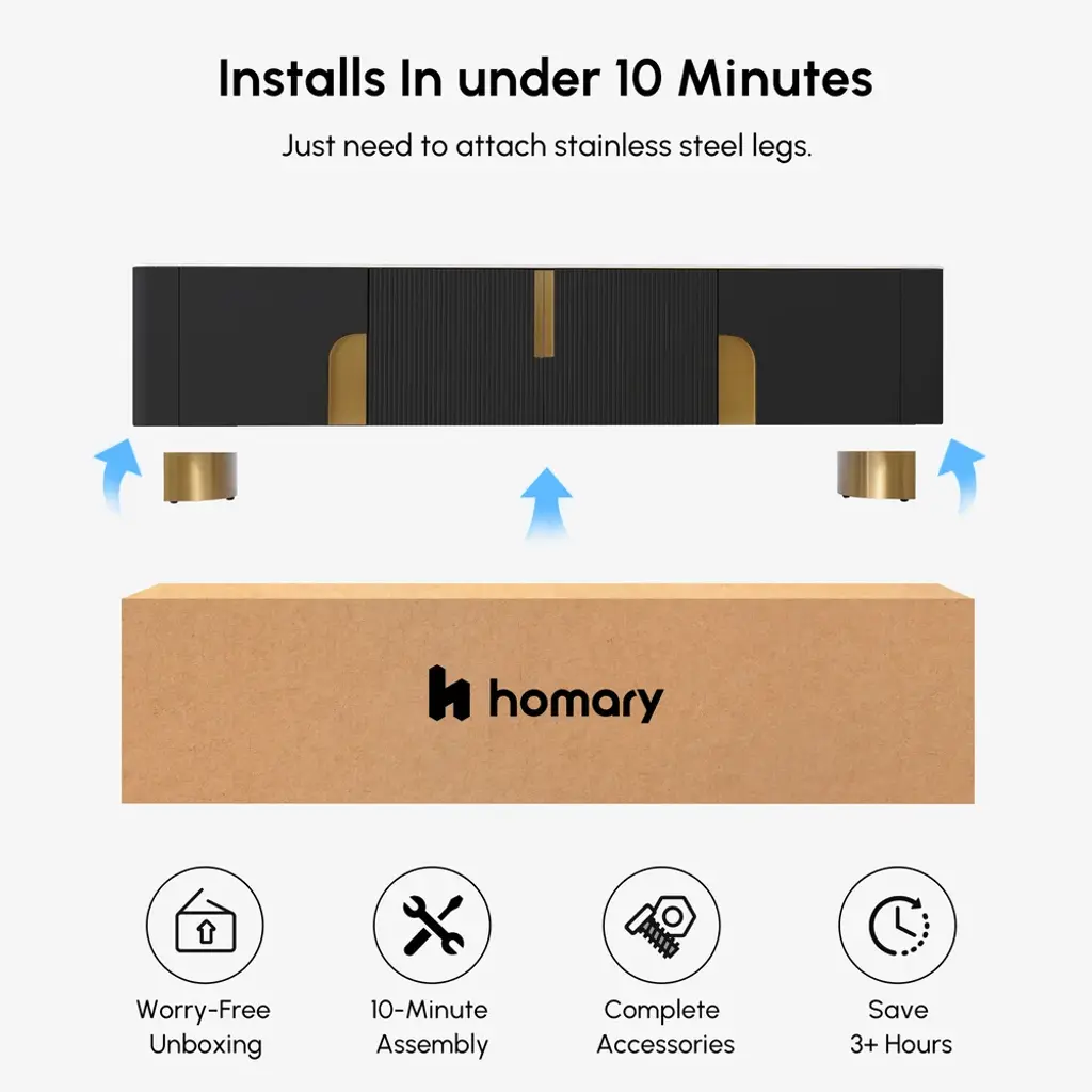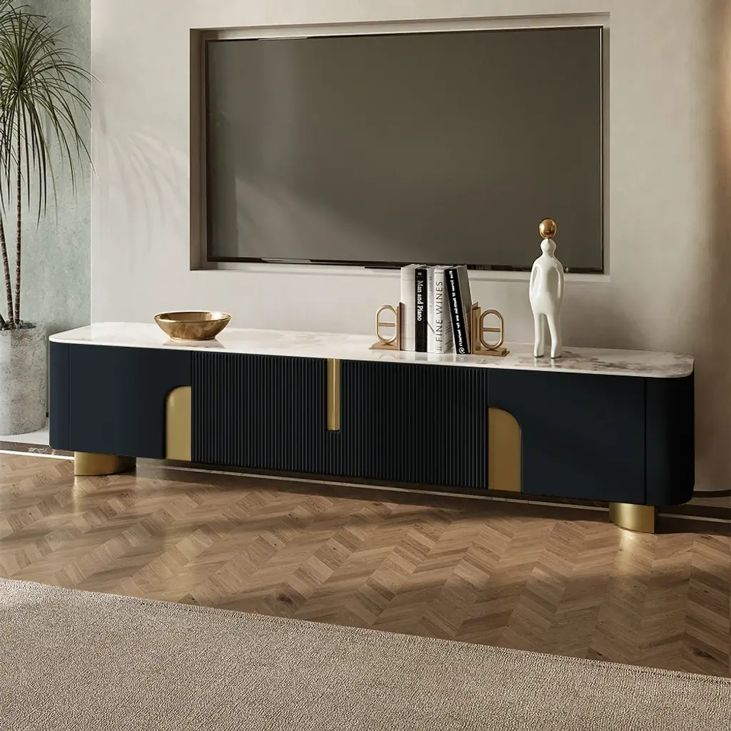 The Artus TV console combines premium sintered stone durability with smart storage. Slatted gold accents frame two 17.5" cabinets and a 34" center unit with shelve. Rounded edges and simple assembly make it both safe and effortless.