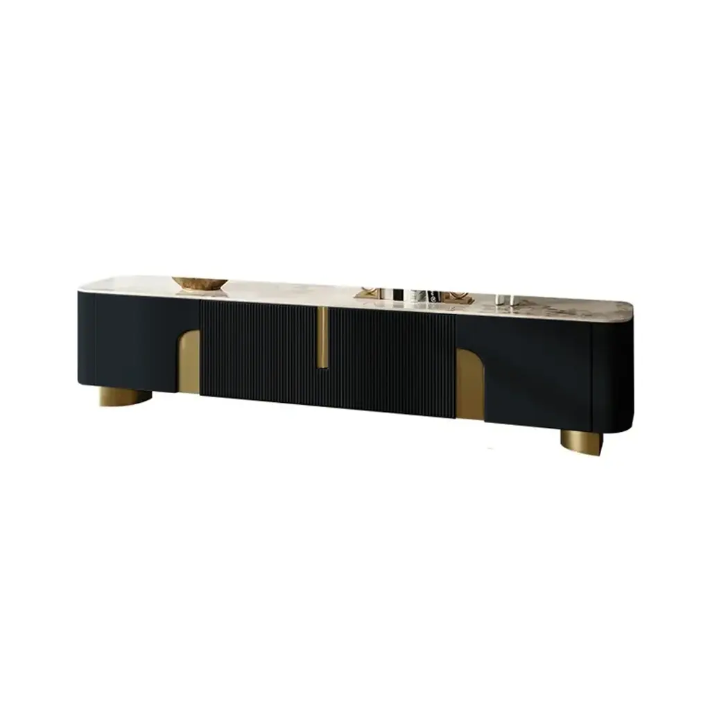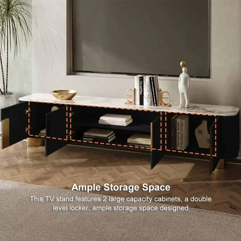 Artus Modern Black Tv Stand Stone Top 4 Doors With Storage Media Console Tvs Up To 85"