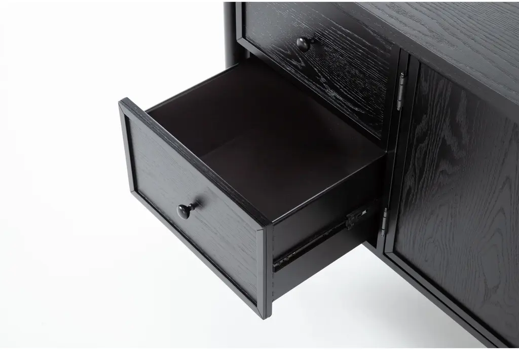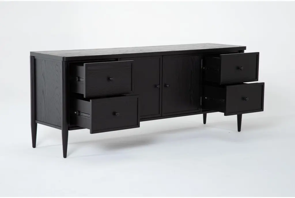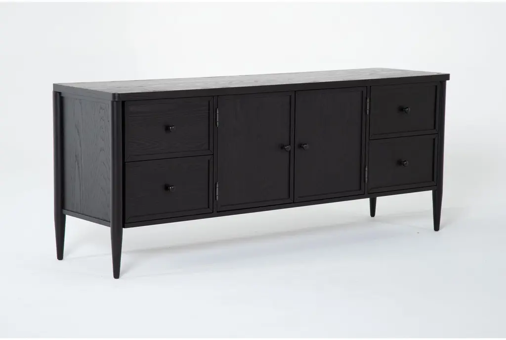 Introducing the Austen Black 74" Traditional Wood TV Stand, the perfect addition to your living room. This entertainment center combines classic design with modern functionality, providing ample storage space for all your media essentials. Its sleek black finish and durable construction make it a stylish and practical choice for any home.