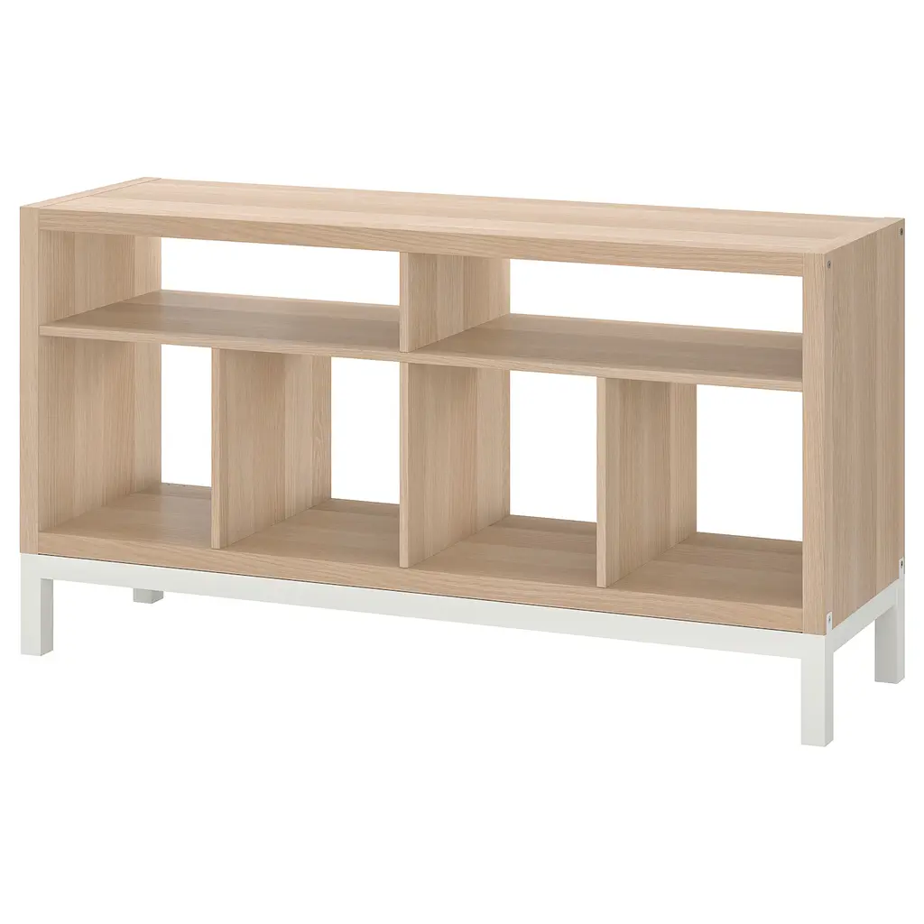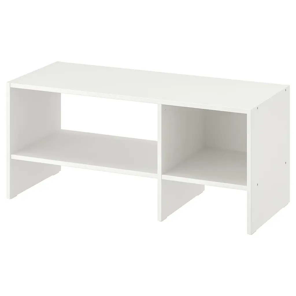 BAGGEBO TV unit - white 35 3/8x13 3/4x15 3/4 ". Combine with the rest of the BAGGEBO storage series and create a matched and complete solution with bookcases, hidden storage, display cabinets and a TV bench. The top panel of the TV bench is intended for a TV with a maximum weight of 22 lbs.