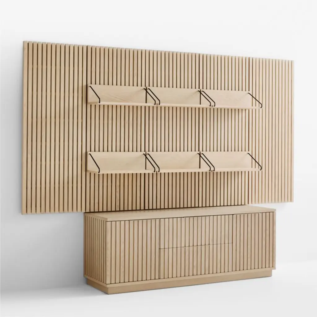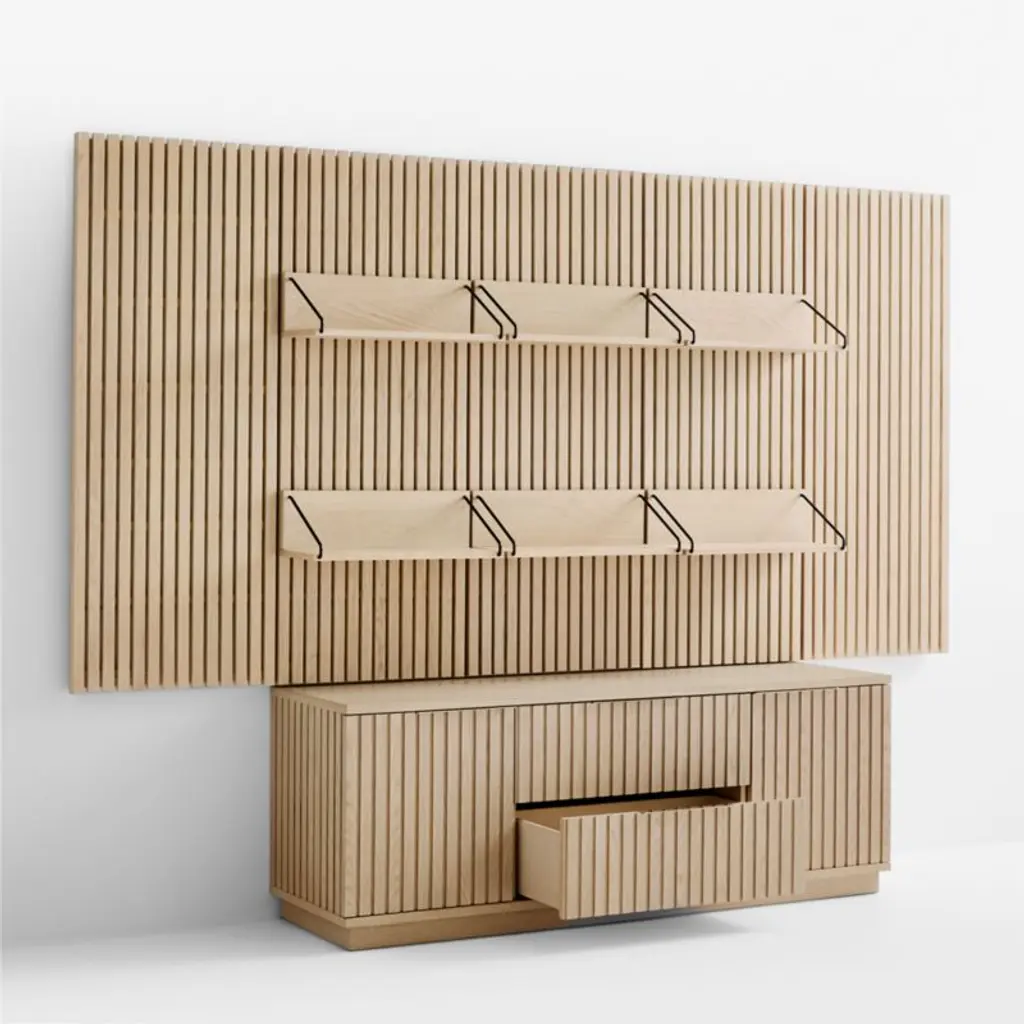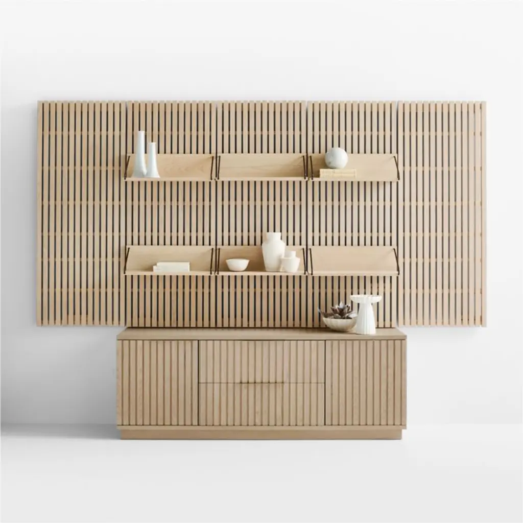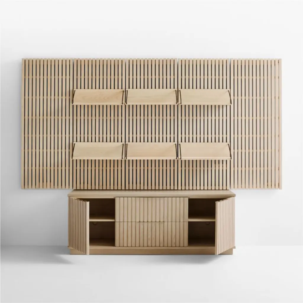 Batten White Oak Storage Media Console Set With 5 Panels And 6 Reversible Shelves