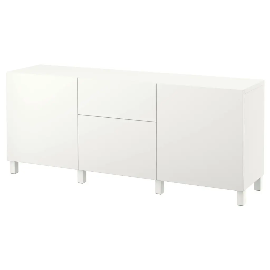 BESTÅ Storage combination with drawers - white/Lappviken/Stubbarp white 70 7/8x16 1/2x29 1/8 ". Adjustable hinges allow you to adjust the door horizontally and vertically. The drawers and doors close silently and softly, thanks to the integrated soft-closing function.