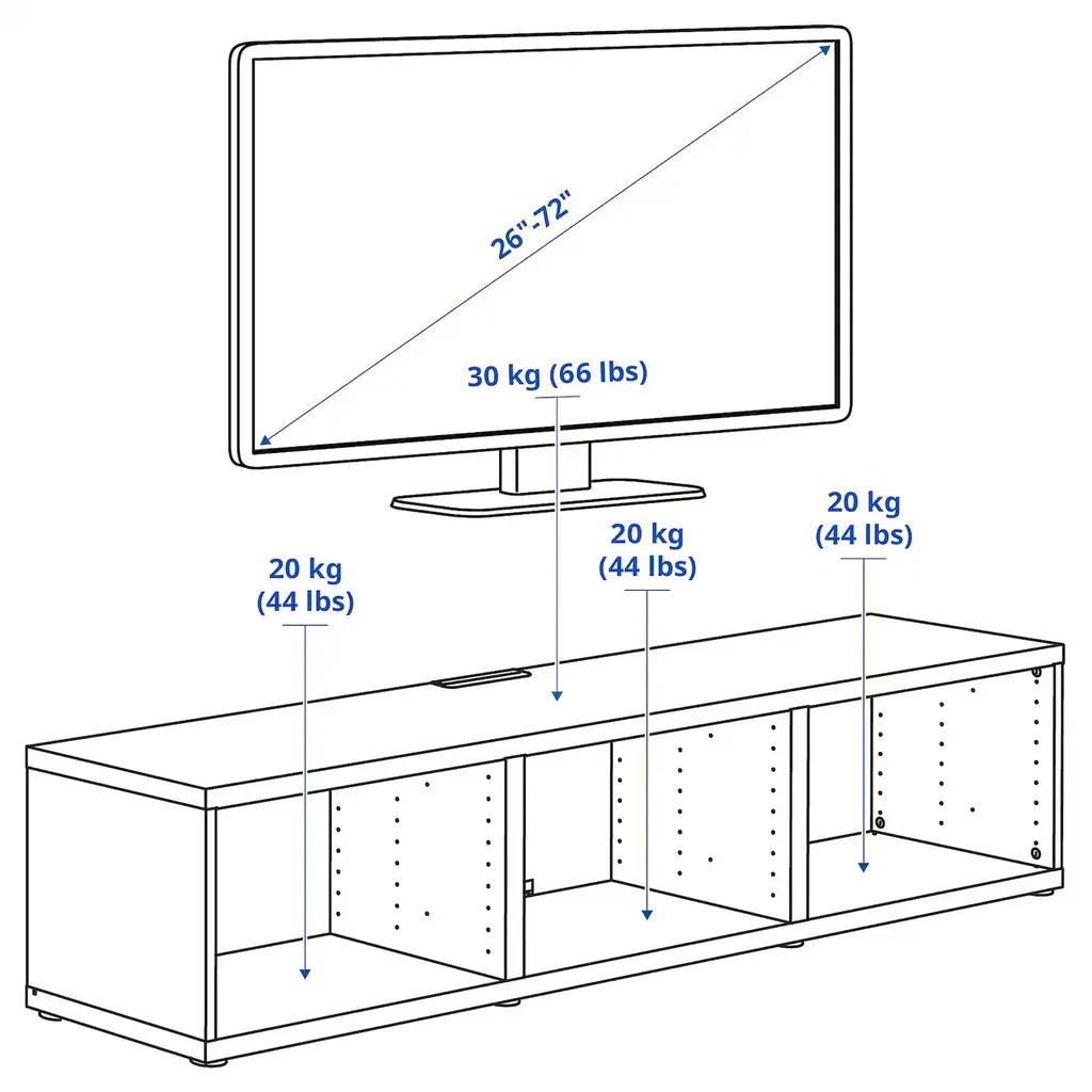 BESTÅ TV unit - black-brown 70 7/8x15 3/4x15 ". Frames in different sizes; allows you to create a solution to suit the size of your TV. You can choose to stand the TV bench on the floor or mount it on the wall to free up floor space. Adjustable feet make the TV bench stand evenly on an uneven floor.