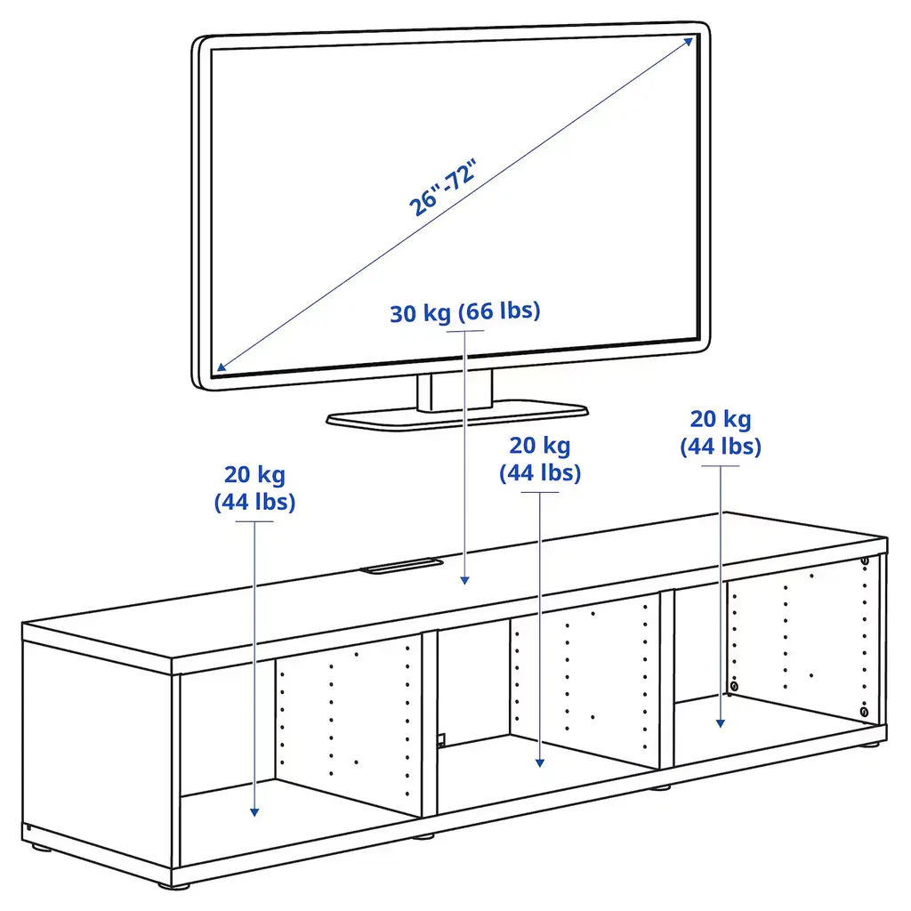 BESTÅ TV unit - white 70 7/8x15 3/4x15 ". Frames in different sizes; allows you to create a solution to suit the size of your TV. You can choose to stand the TV bench on the floor or mount it on the wall to free up floor space. Adjustable feet make the TV bench stand evenly on an uneven floor.