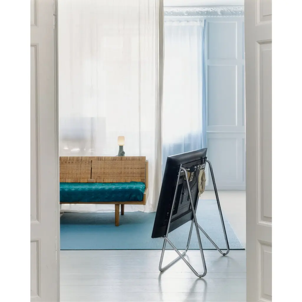 Pedestal's Bloom TV stand elevates your television on a sleek, curved steel frame, with a gently tilted angle ensuring the perfect viewing height for a relaxed sofa experience. This charmingly minimalist TV stand is an ideal choice for a contemporary home, while its soft curves also appeal to those looking for a true statement piece. Like other Pedestal TV stands, the Bloom stand is compatible with most 40" to 70" flat-screen TVs.
