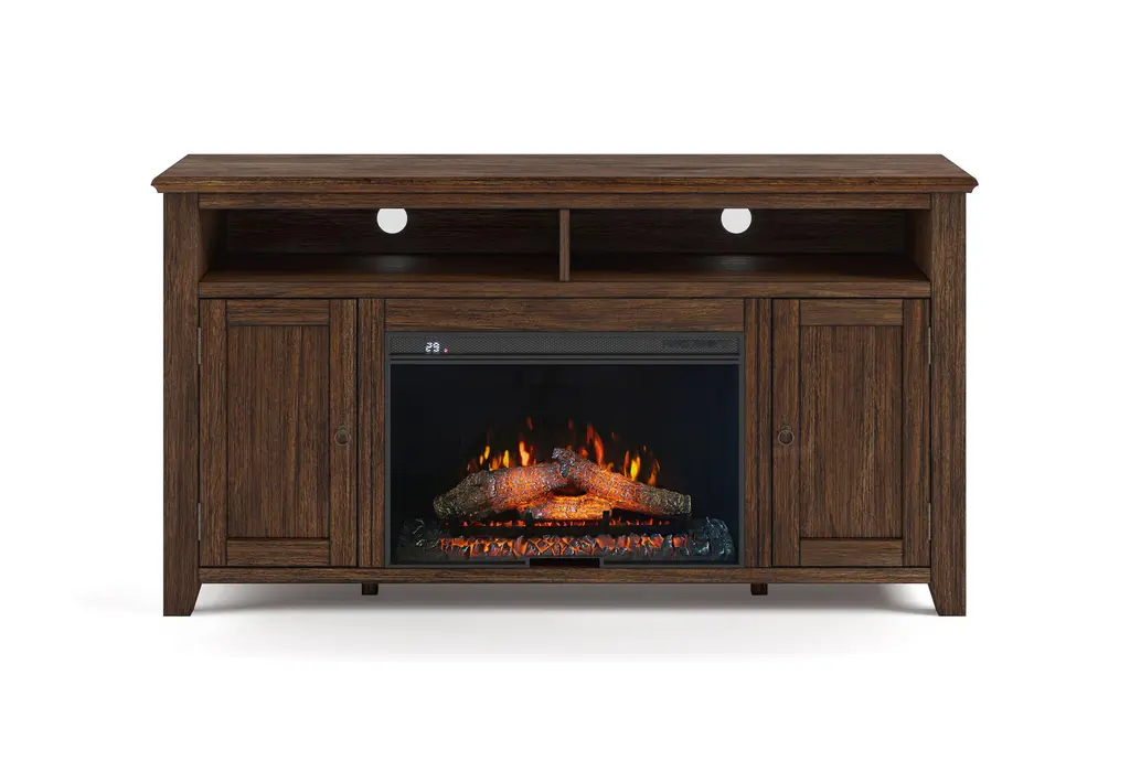 The Briceburg 60" Fireplace Rustic TV Stand is a perfect blend of style and functionality, designed to enhance your living space with its rustic charm. Crafted from high-quality acacia wood, this brown TV stand features a built-in fireplace, adding warmth and ambiance to your room. With ample space for electronics and a dedicated shelf for a sound bar, it offers both practicality and elegance.