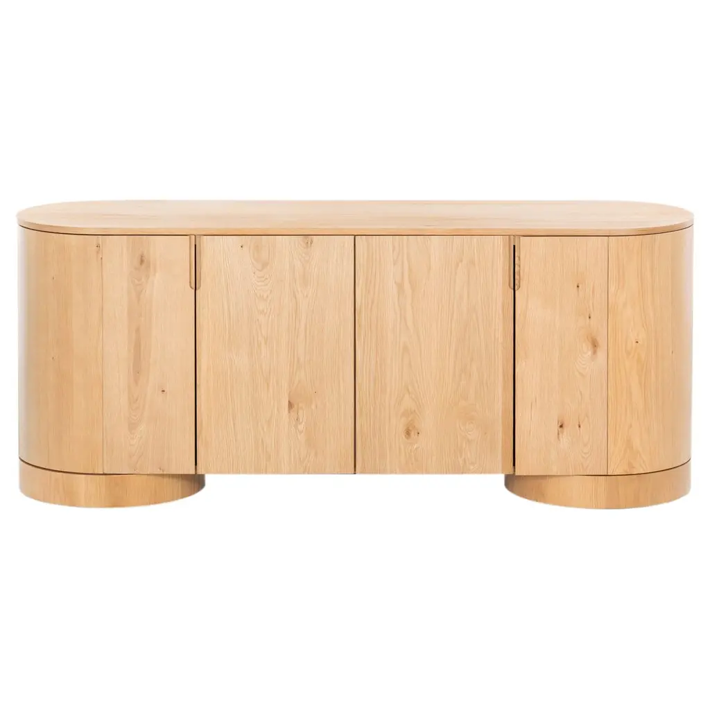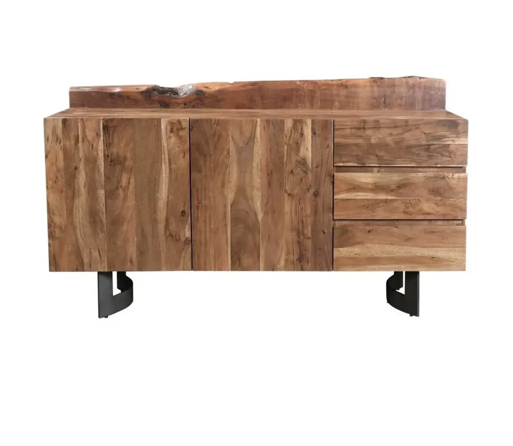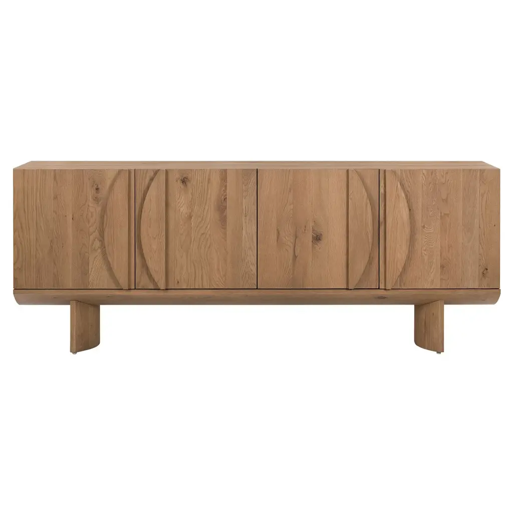 The lavish grain of the guanacaste, a durable, fast-growing hardwood, is all the decoration this media console needs. The curves of the sides echo the wood's sinuous patterns. Behind the doors are shelving and rear cutouts for cord management.
