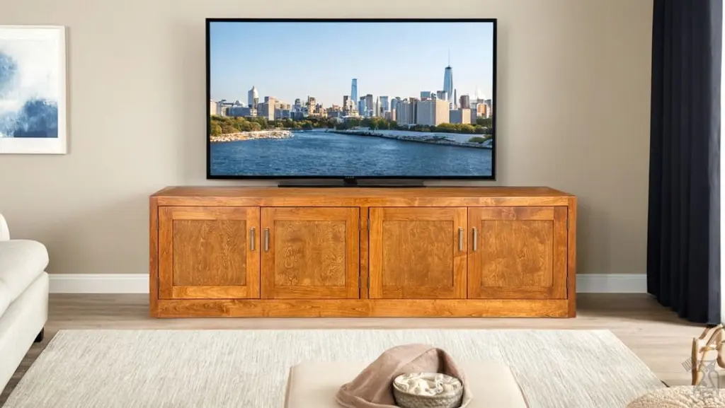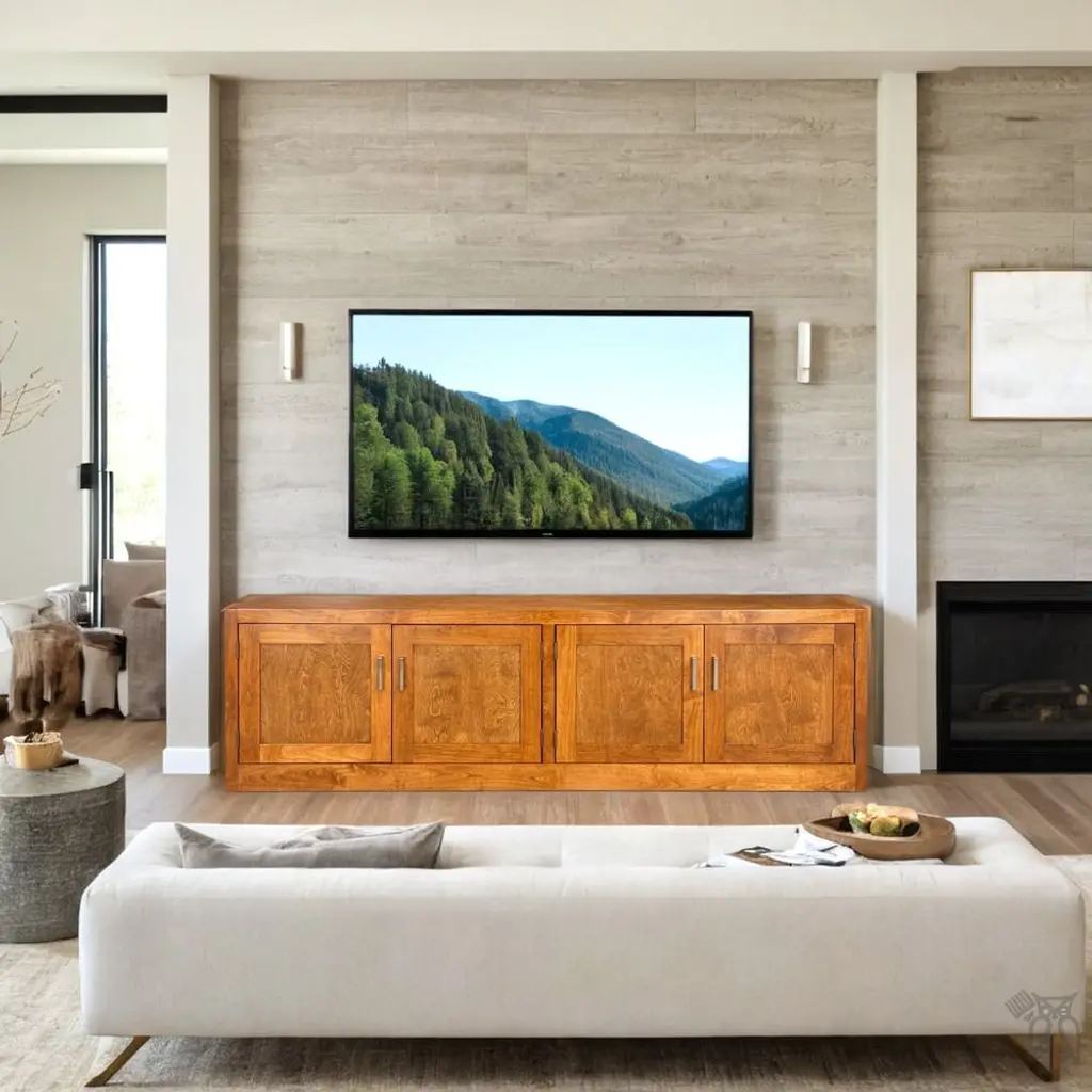 California Made Alder Wood Huntington 78" Tv Stand Console With Soundbar In Hazelnut Finish