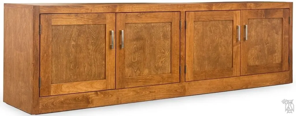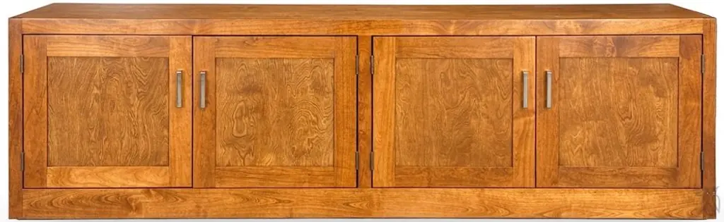 California Made Alder Wood Huntington 78" TV Stand Console with Soundbar in Hazelnut Finish. This item is stocked in Hazelnut Finish or special order in other color. The Huntington collection features a minimalist style yet still is reads a bit edgy with its squared corners. This softer side of modern furniture gives your home a bit of comforting style while still remaining on trend. Consoles feature a slick closed base. This collection is offered in solid and plywood construction in oak or alder wood with no particle board. Console are available with glass or inset panel wood doors. Cord access holes available on request. Options include: Choose oak or alder wood Choose style: Huntington, Newport, Traditional, Rustic Alder, Rustic Maple or Mission Oak Choose color Choose 54", 58", 63", 68", 73', 78", 83" or 88" wide Choose 14", 16.75", 20" or 23" deep Choose 23", 30" high or 36" high. Custom sizes available Choose raised panel wood doors, flat panel wood doors or glass doors Other configurations available. See the "Resources" tab for details Fully assembled. No particle board. Made in California. Manufacturer: ODC Products, A Division of Oak Design Corporation.