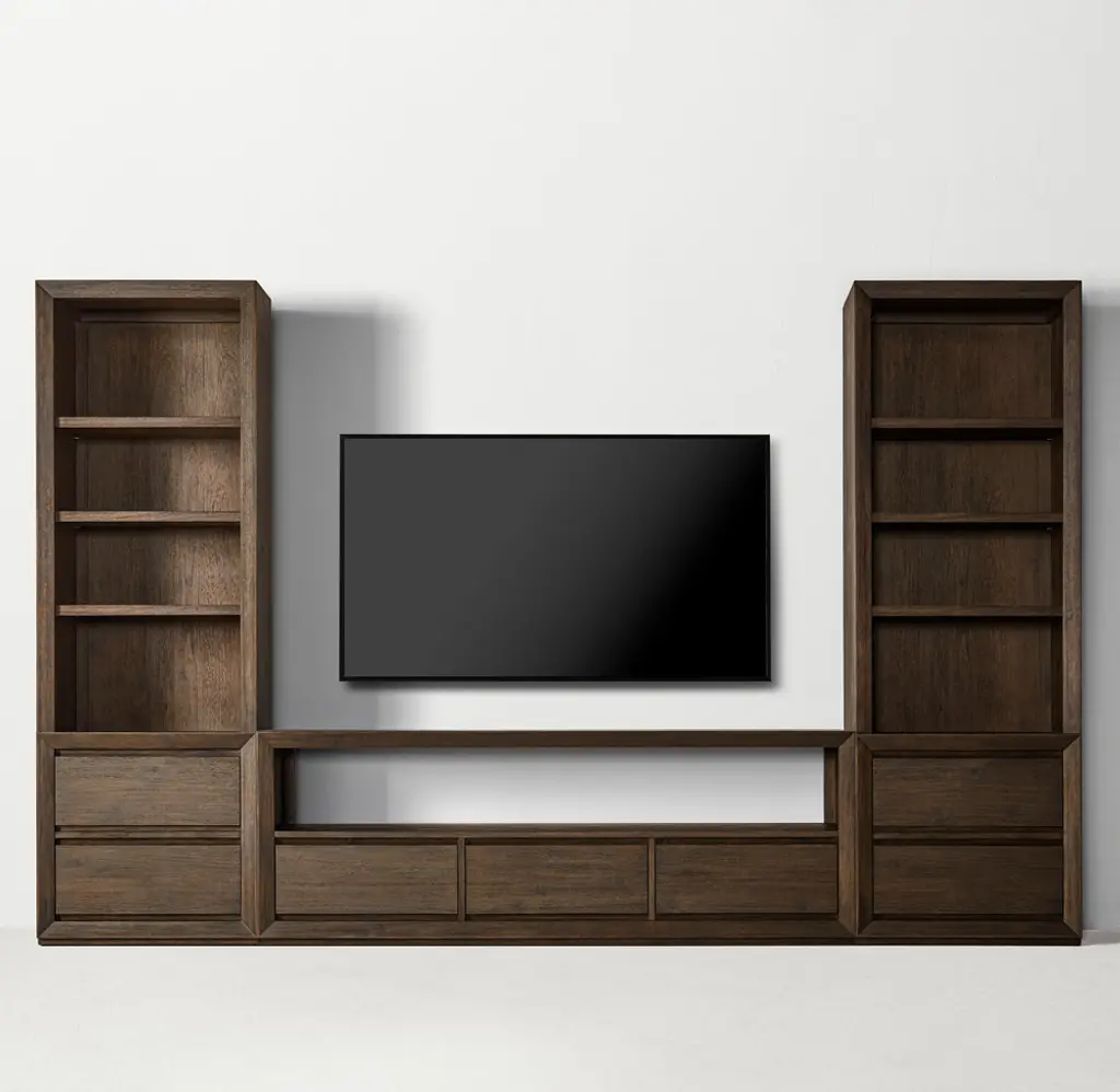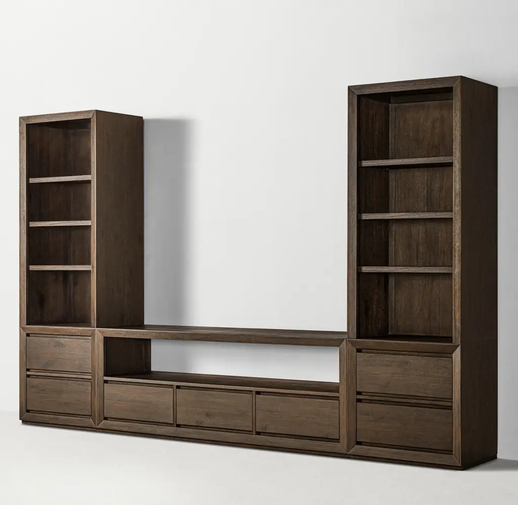 Callum Wide Media Wall Set with Tall Media Bookcase Towers