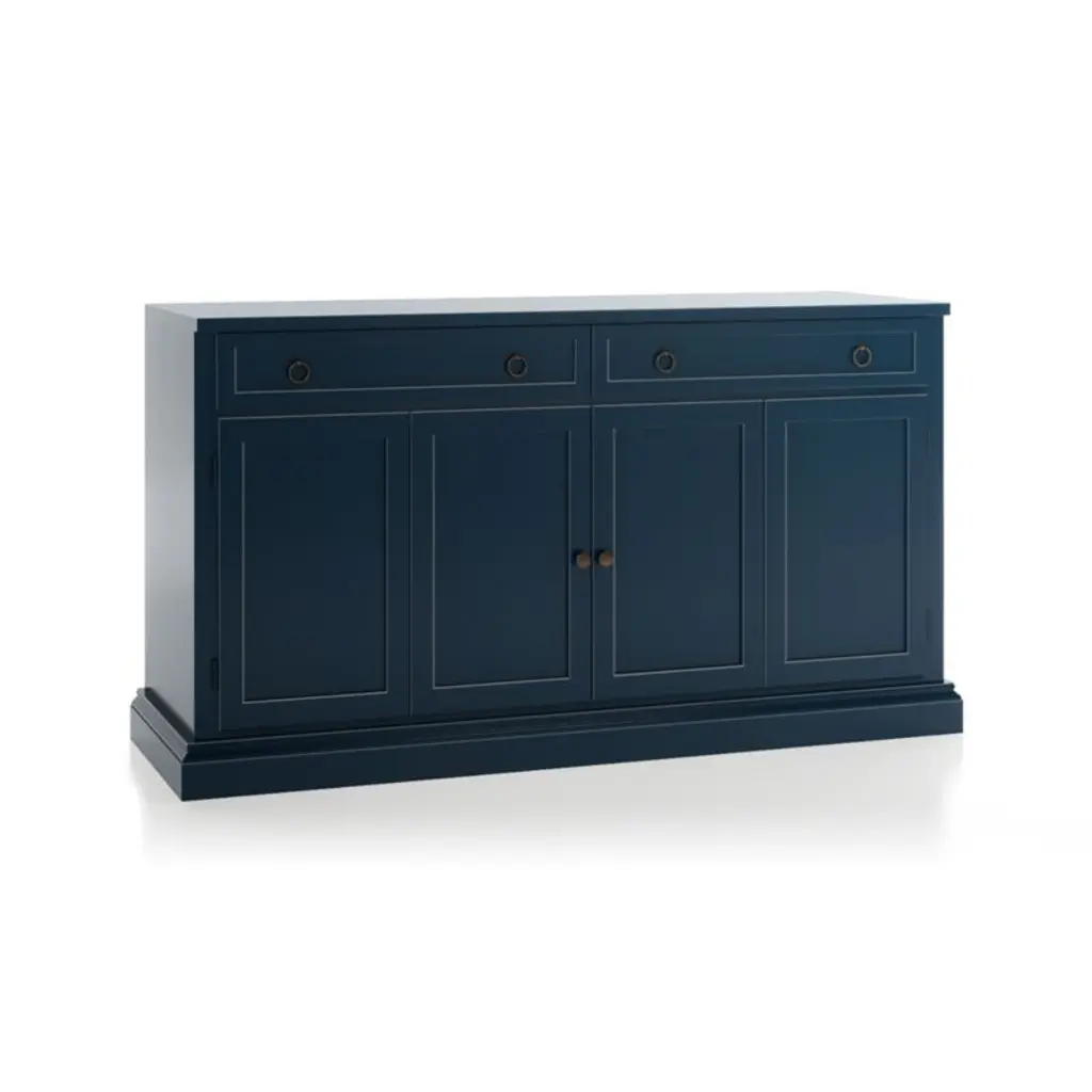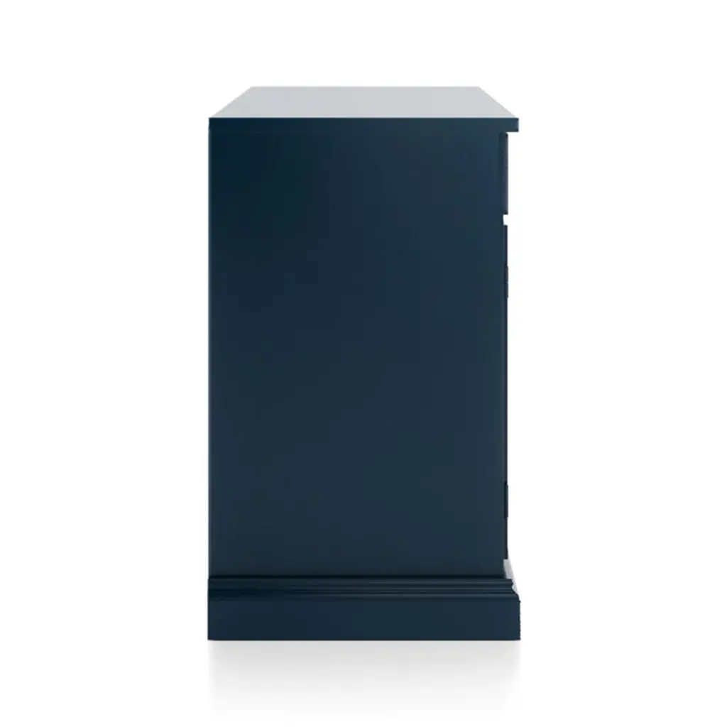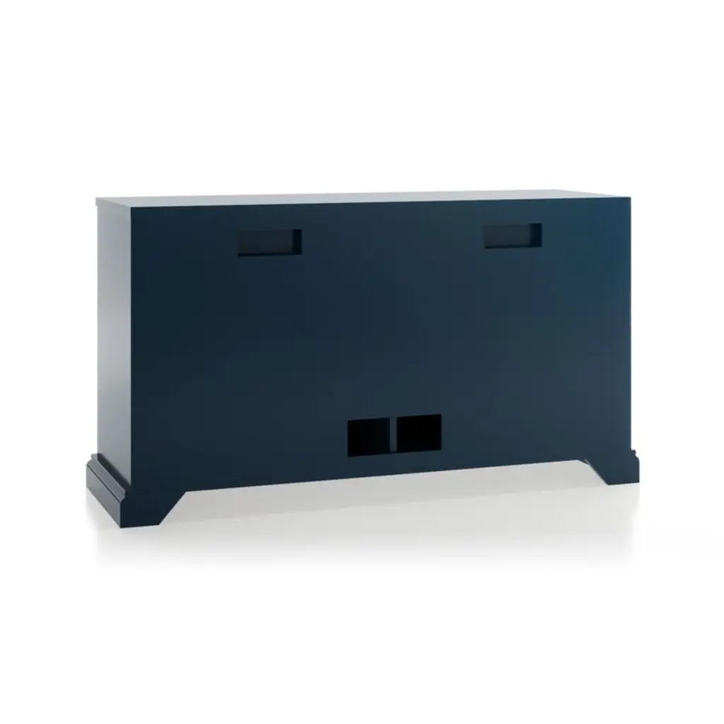 Making an extended cameo appearance in the living room, family room or den, this versatile media console pairs with other Cameo modular pieces to create customized storage, media configurations and display of prized possessions. Each console exhibits a rich, multi-step indigo painted finish, hand-applied by Italian artisans.