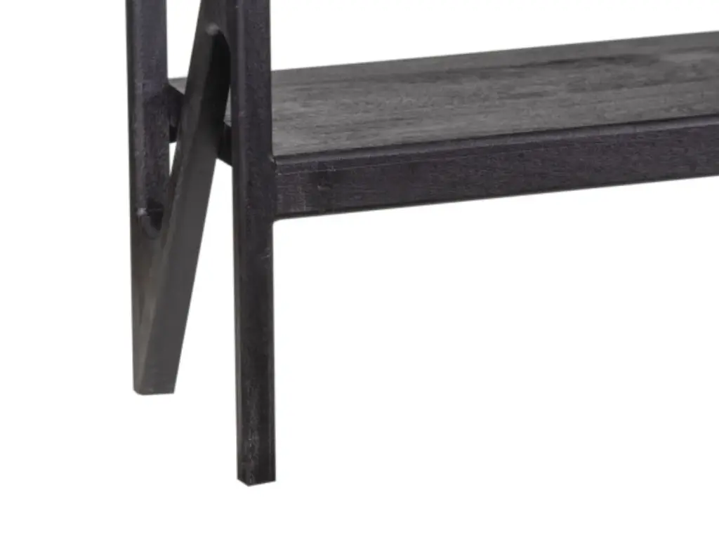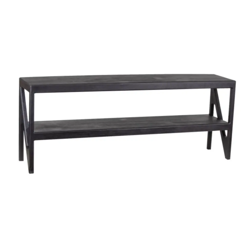 The Canberra TV stand is constructed of black sandblasted mango wood, resulting in a modern, sleek appearance.