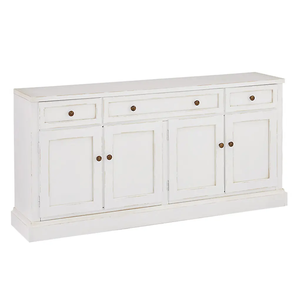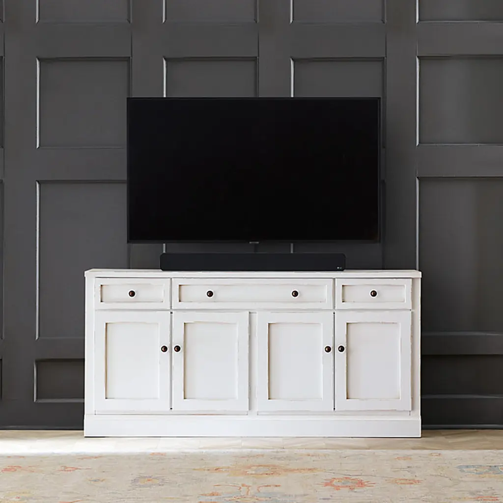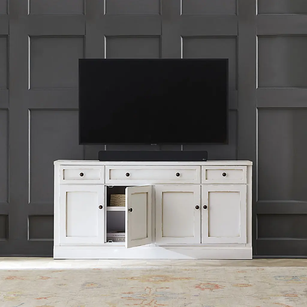 With our modular Josephina Media Console, you can create an entertainment center to custom fit any space. Designed to hold most 60” screens, this generous media console and TV stand features three storage drawers and two double-door cabinets with one adjustable shelf each for components and gaming equipment. Base molding removes from the sides, so you can add any of our Casa Florentina Bookcases to either end for a seamless "built-in" look. Part of our exclusive Casa Florentina collection, the finishes are hand applied by Italian artisans using the same simple tools and techniques employed by Florentine artists for centuries. Casa Florentina Josephina Media Console features:
