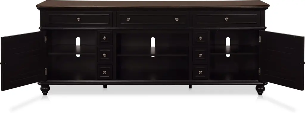 The Charleston TV Stand will become a favorite piece in your home for years to come with its farmhouse design, two-toned look and ample storage.