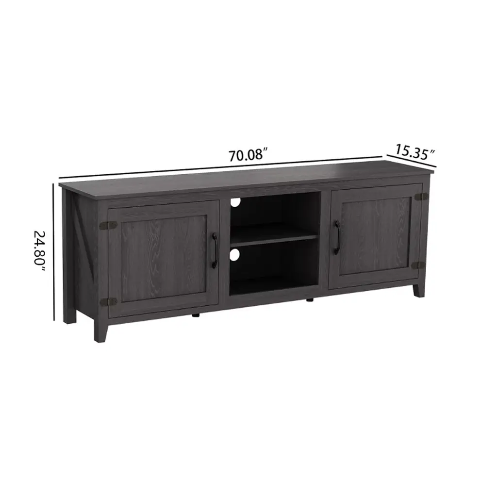 Ample Display and Storage Space: TV stand the spacious 70.08 inch long 15.35 inch wide tabletop can accommodate TV within 60 inches, 4open storage compartments cabinet for TV box, game console, remote controls, or anything you like.Storage Solution: Use in bedroom, living room, or playroom and keep clutter under control by storing all of your entertainment accessories in one convenient place; Store and organize movies, toys, remote controls, electronic components, consoles, and more; The horizontal design fits easily in many locations throughout the home.Sturdy Structure Design: Television stands made of 15mm board and particle board frames . Leg height: 2.76 inch.Wide Application: TV table can be applied in many occasions, such as a bedroom, living room, office and so on. Other than a TV cabinet, it also can be an accent console table or a storage cabinet in your rooms.Easy to Assemble: This industrial TV stand is elaborate design and clear instructions for all steps allow you to easily assemble Within 20 minutes.Product Dimension: 70.08" X 15.35" X 24.80".