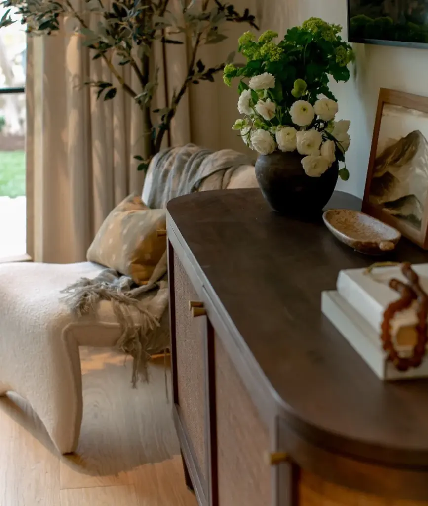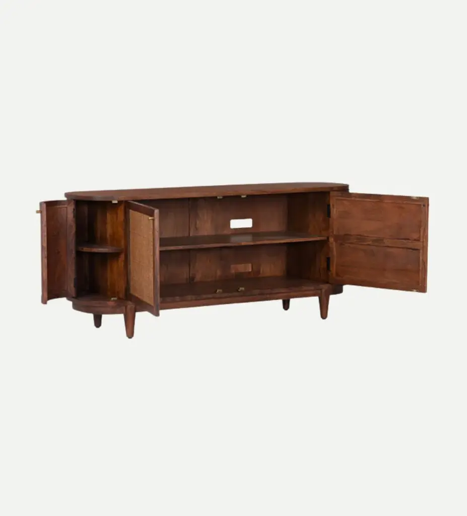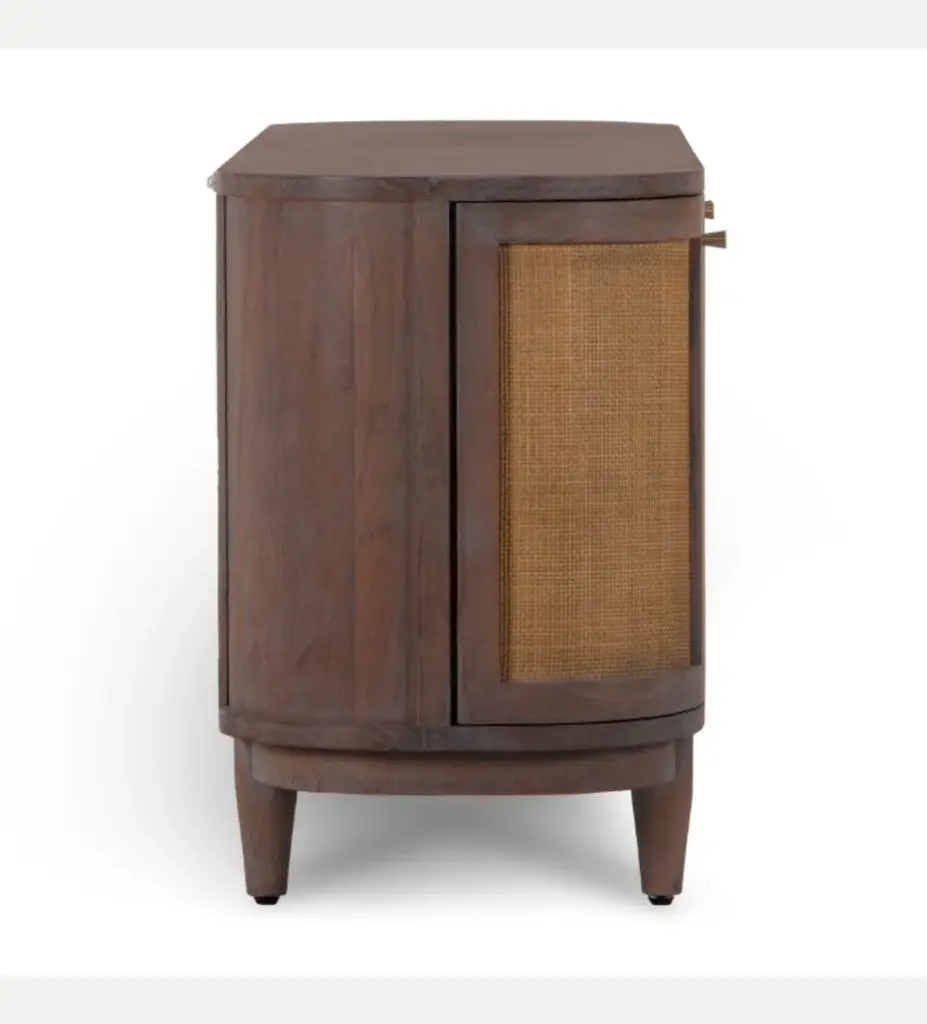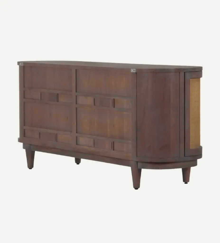 It's all the storage you've ever needed but in the prettiest way. This curved console made of acacia with woven cane insets gives a deeper tone with plenty of texture to add depth to your space. Dimensions: 30" H X 68" W X 20" D Materials: Plantation grown acacia & cane