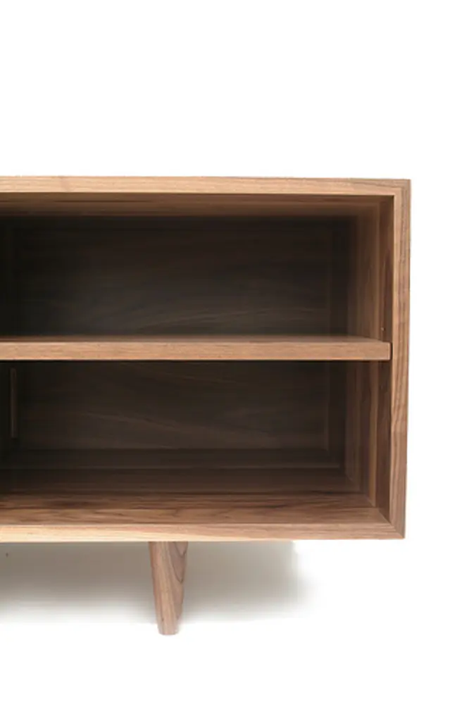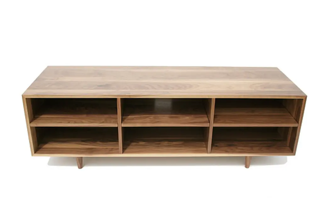 The Classic Media Center is a beautiful and simple piece designed specifically to organize and showcase equipment or items that must be seen! It is built with reinforced mitered joints, which allow the wood grain to wrap around the piece in one fluid sweep, showcasing the beauty of the locally-harvested, solid wood. Finished with a durable, non-toxic finish. The three shelves are adjustable and configure to meet your equipment needs. Wires access the piece through a 2"x4" opening on the back and passages behind each partition allow wires to pass freely between each section.