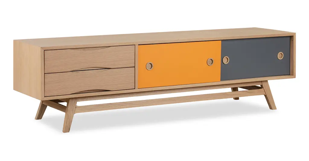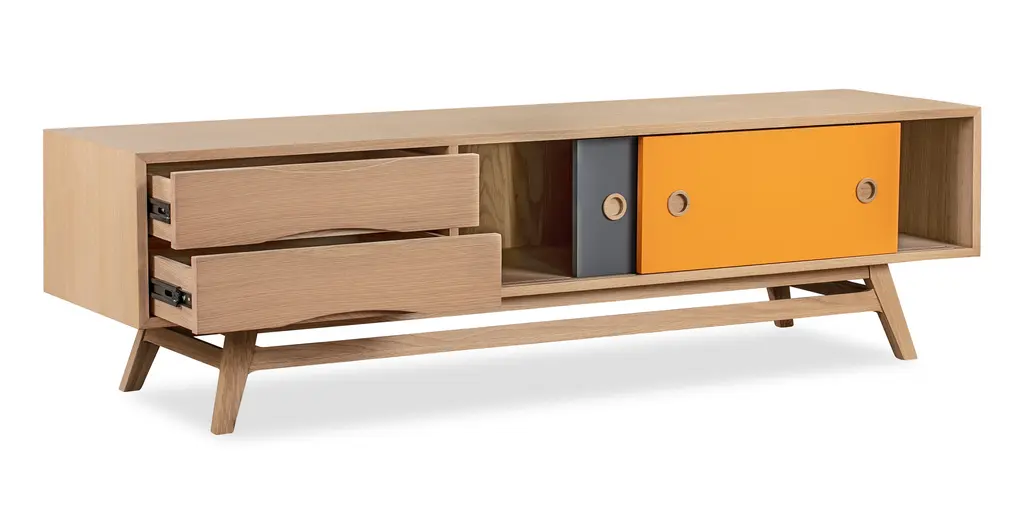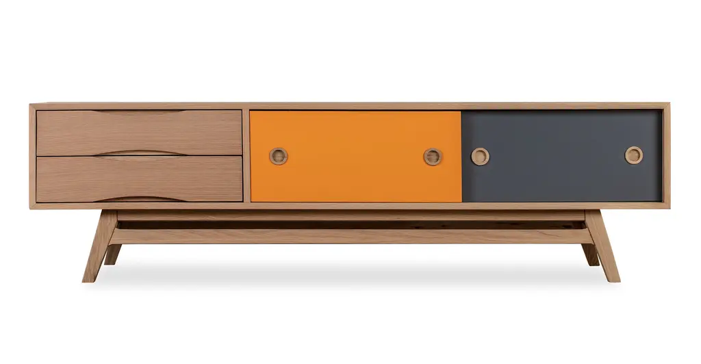 Color Pop is not just a fun piece of modernist furniture. It is a low rise Entertainment Center hosting the latest in media advancements on and behind its mid-century modern facade.
