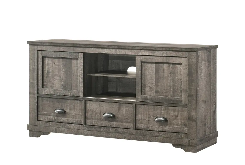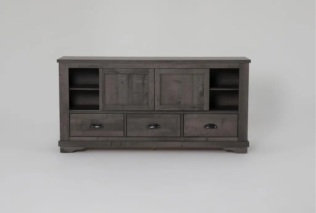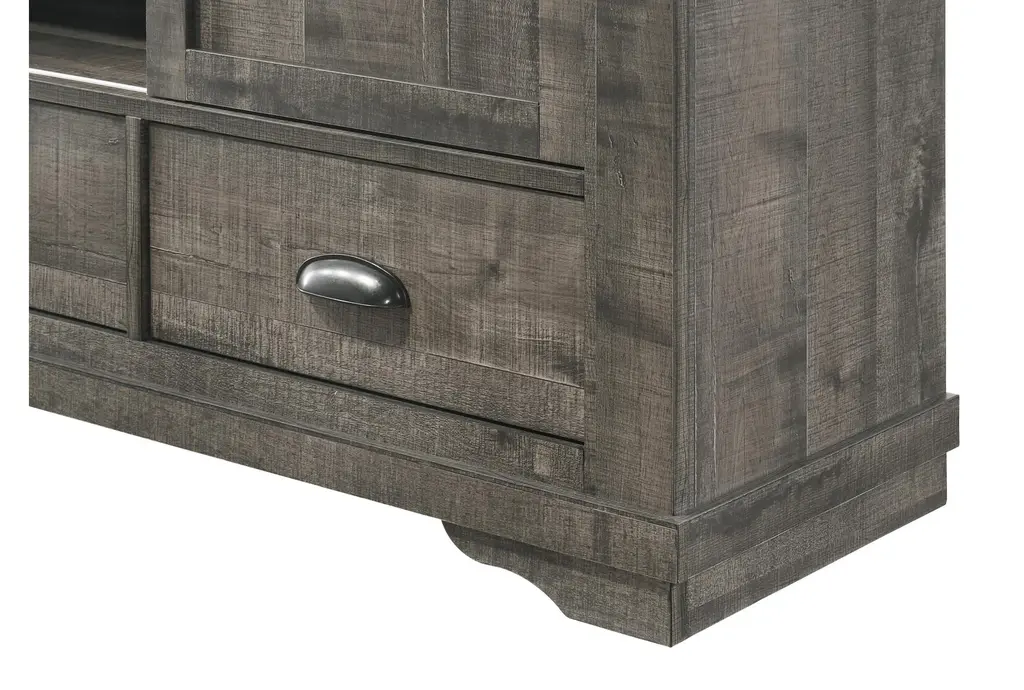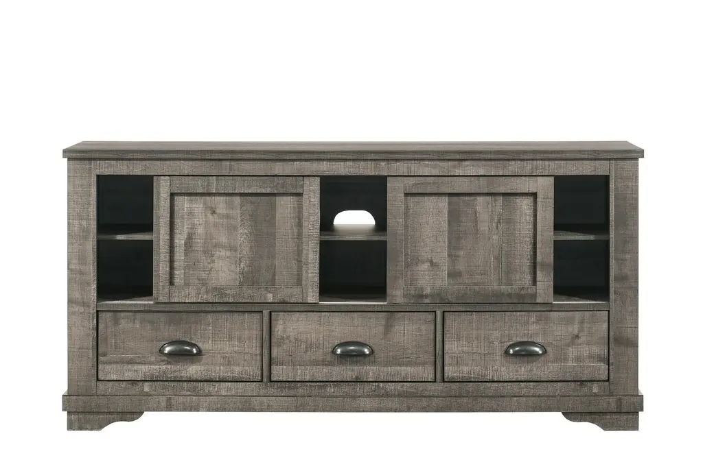 Coralee Grey 63" Rustic Wood Tv Stand | Sliding Doors | Shelves | Drawers | Storage | Entertainment Center