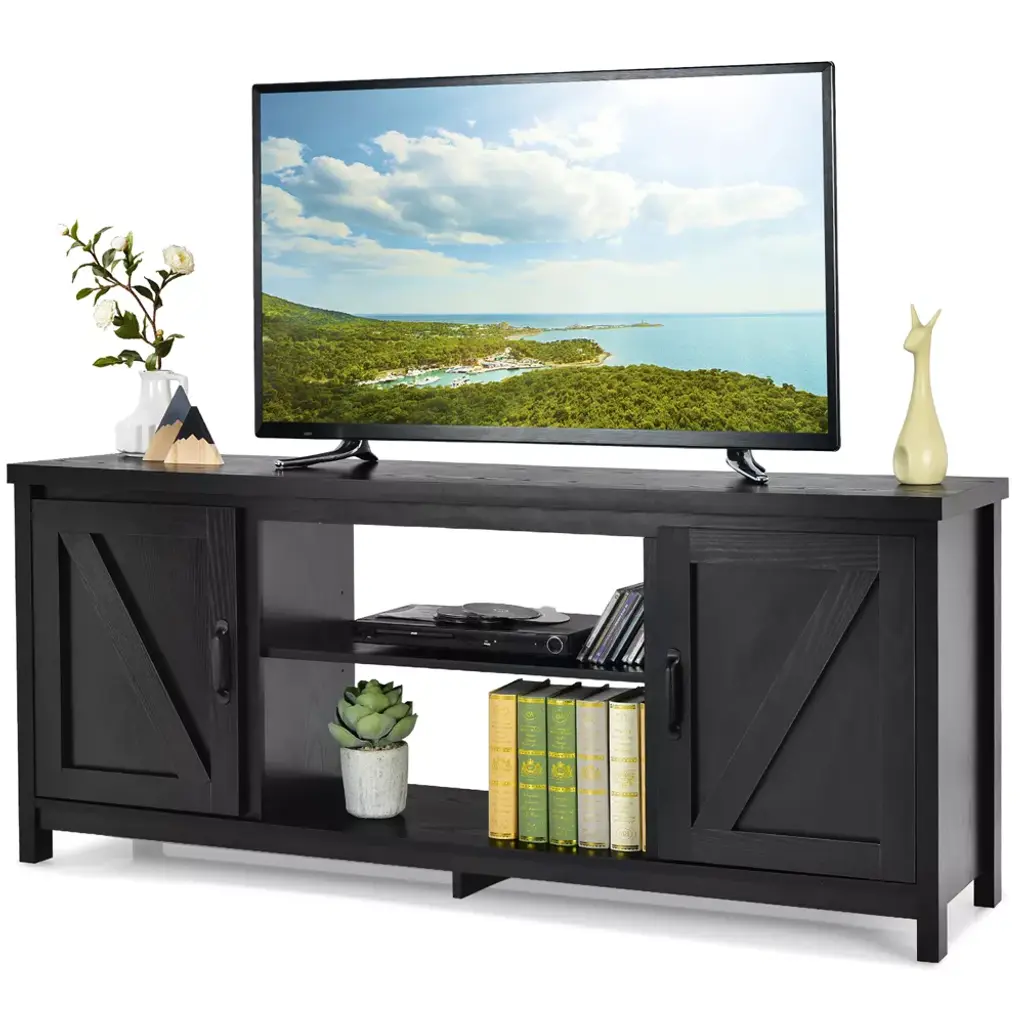 Whether placed in your living room or bedroom, this TV cabinet is a great addition that provides ample space for displaying and storing your items. This 59'' wide TV console can hold flat screens up to 65''. Featuring 4 cable management holes on the back board, the TV console brings a convenient way to keep your cable clutter-free. Besides, the storage cabinet with adjustable shelves allow you to store a variety of items with different heights. Made of thickened engineered wood, our TV stand is not only beautiful in appearance, but also has good durability and stability. This multifunctional TV cabinet is ideal for your living room, bedroom, dining room and more. Don’t miss it! Features Features with 2 cabinets and adjustable central shelves The TV stand can accommodate most flat-screen TVs up to 65'' Anti-scratch foot pads protect the floor from scratching Wood finish adds a touch of elegance to your home Can be used as a TV console, a storage cabinet or a sideboard 4 cable management holes make the room appear tidy 2 metal handles are convenient for opening the door Extra support legs increase overall stability The waterproof surface is effortless to clean with a wet cloth Easy to assemble with clear instructions Material: Engineered Wood Color: Natural\Black\Coffee Net Weight: 69.5lbs Dimension: 59'' x 16'' x 25'' (L x W x H) Weight Capacity of Tabletop: 140lbs Weight Capacity of Middle Shelf: 20lbs Weight Capacity of Lower Shelf: 40lbs Package Includes: 1 x TV Stand 1 x Instruction