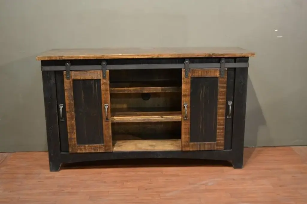 Crafters And Weavers Greenview Sliding Door Distressed Black Tv Stand