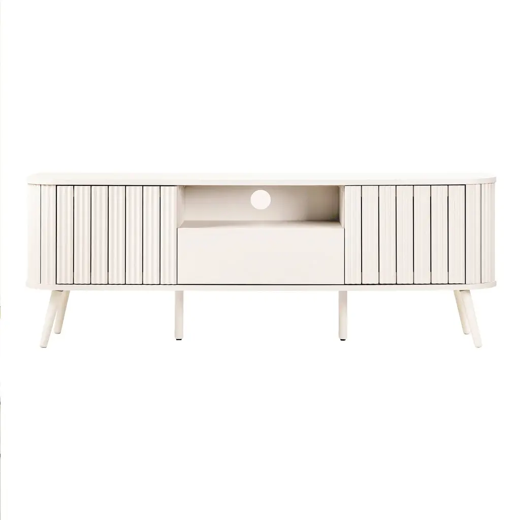 Damien Farmhouse Curved Tv Stand With Drawer And Storage Doors Fits Tvs Up To 75 In. With Cable Management - White