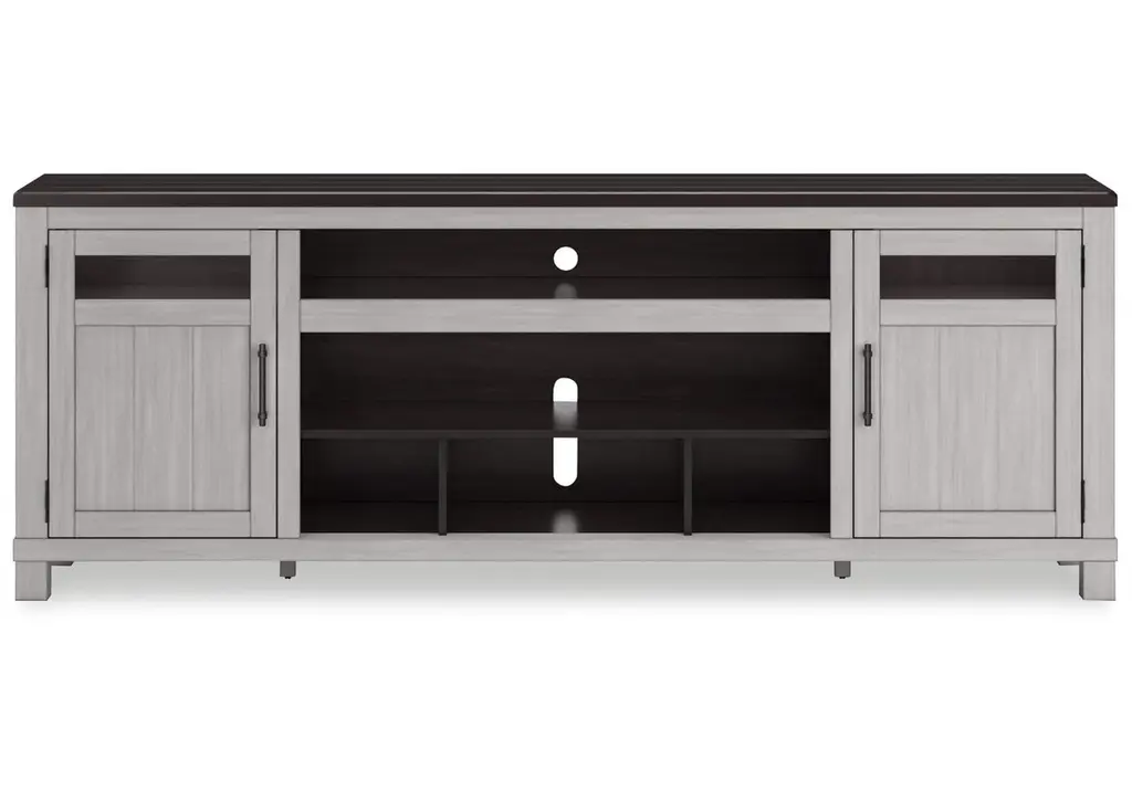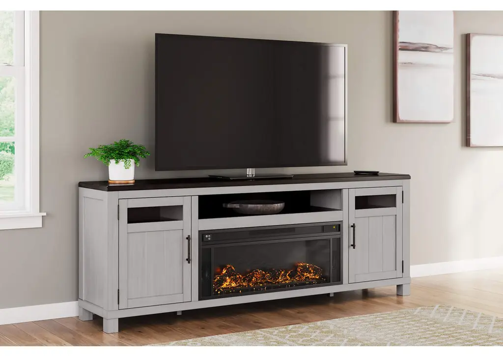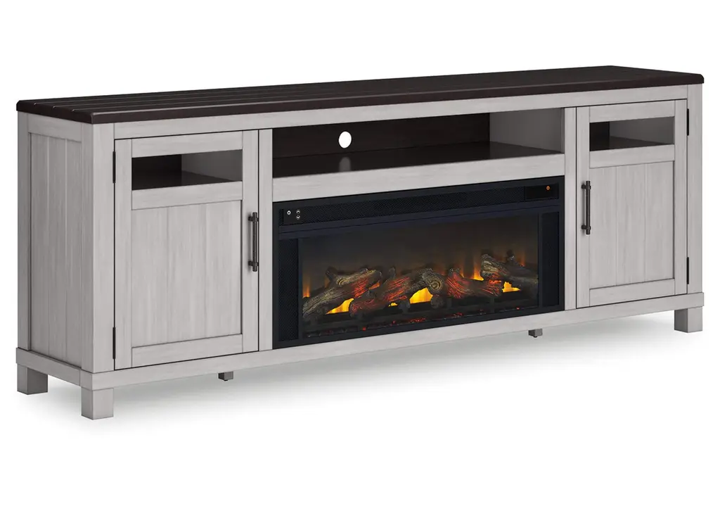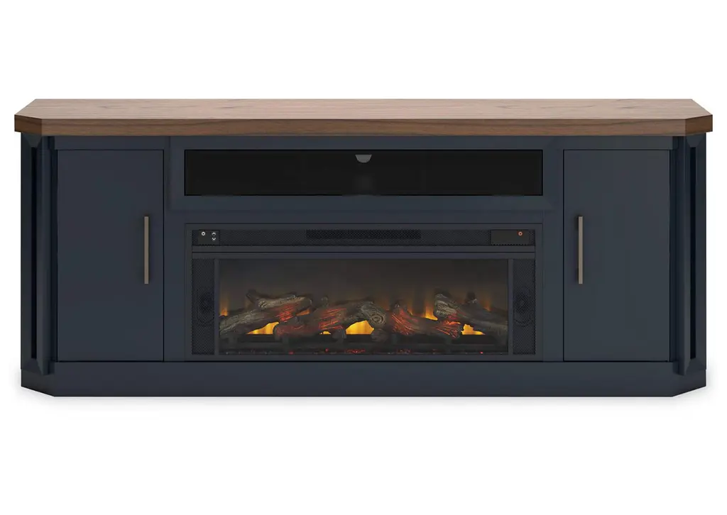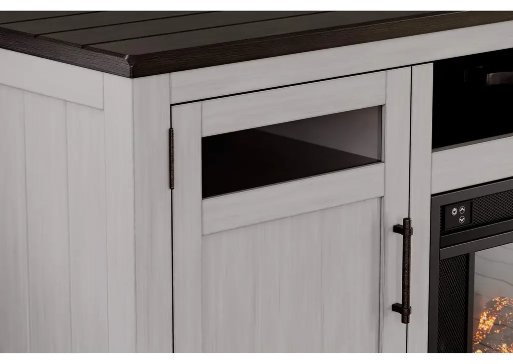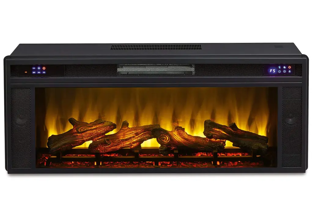 Make a farmhouse-inspired statement with this TV stand. It’s beautifully crafted to stand the test of time, with a planked effect and clean two-tone finish that lend a relaxing vintage feel. With two cabinets (each with an adjustable shelf) and an open cubby, it offers plenty of storage to house all your electronic needs. Enhancing the experience, the fireplace insert brings a touch of warmth and beautiful ambiance to your living room. With the touch of a button, adjust the temperature and the flame brightness, and connect your device to the built-in wireless speakers. The flame effect includes a realistic-looking log set with glowing embers, along with an ambient down light. Weight 258.000 lbs. (116.1kgs.)