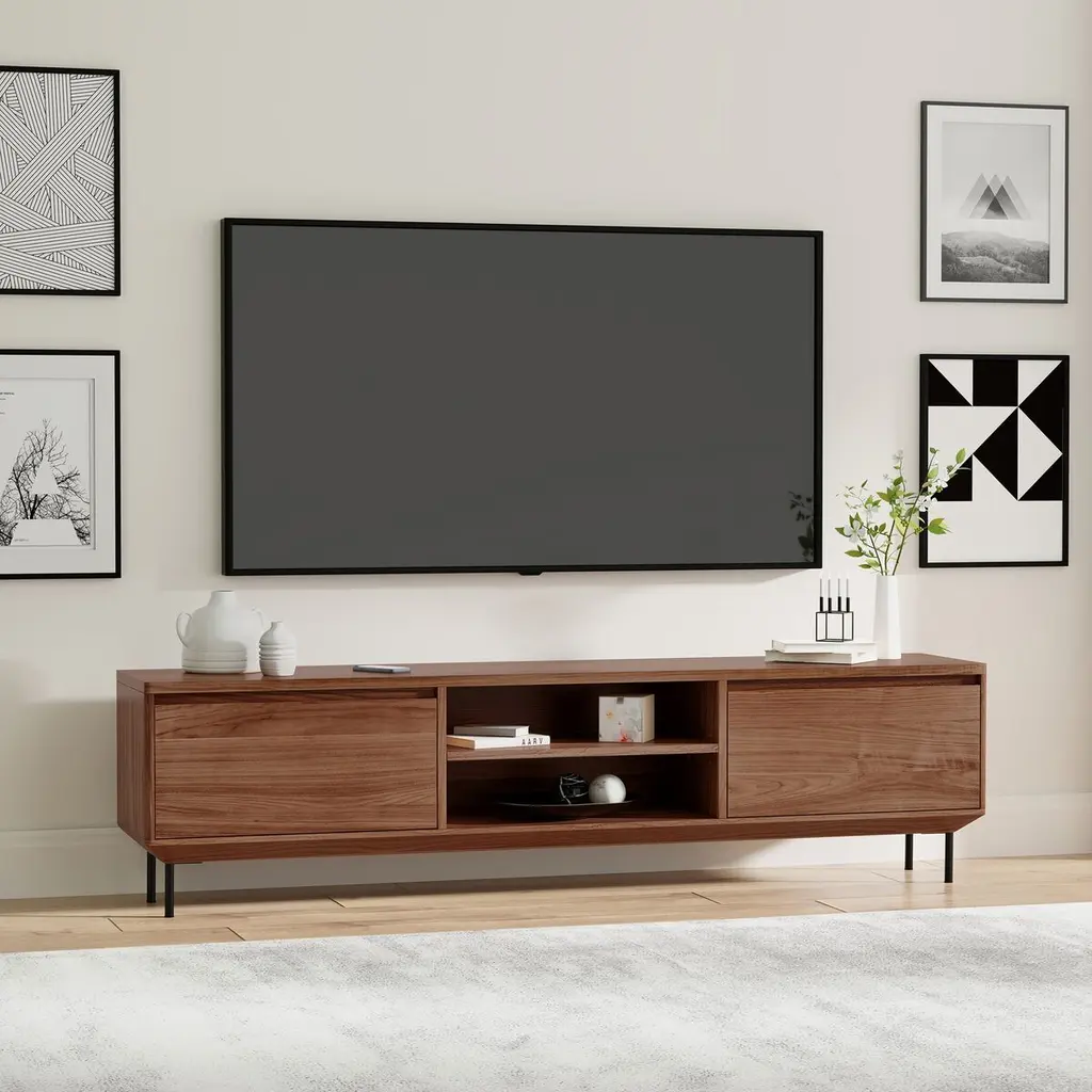 A minimalist look with maximum storage, the Nordelle Media stand perfectly embodies modern style. With plenty of space to store clutter away, this media stand allows for organization without compromising on style. Designed by Cristiano Tomasso.