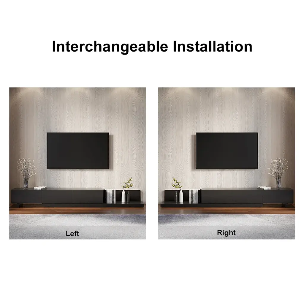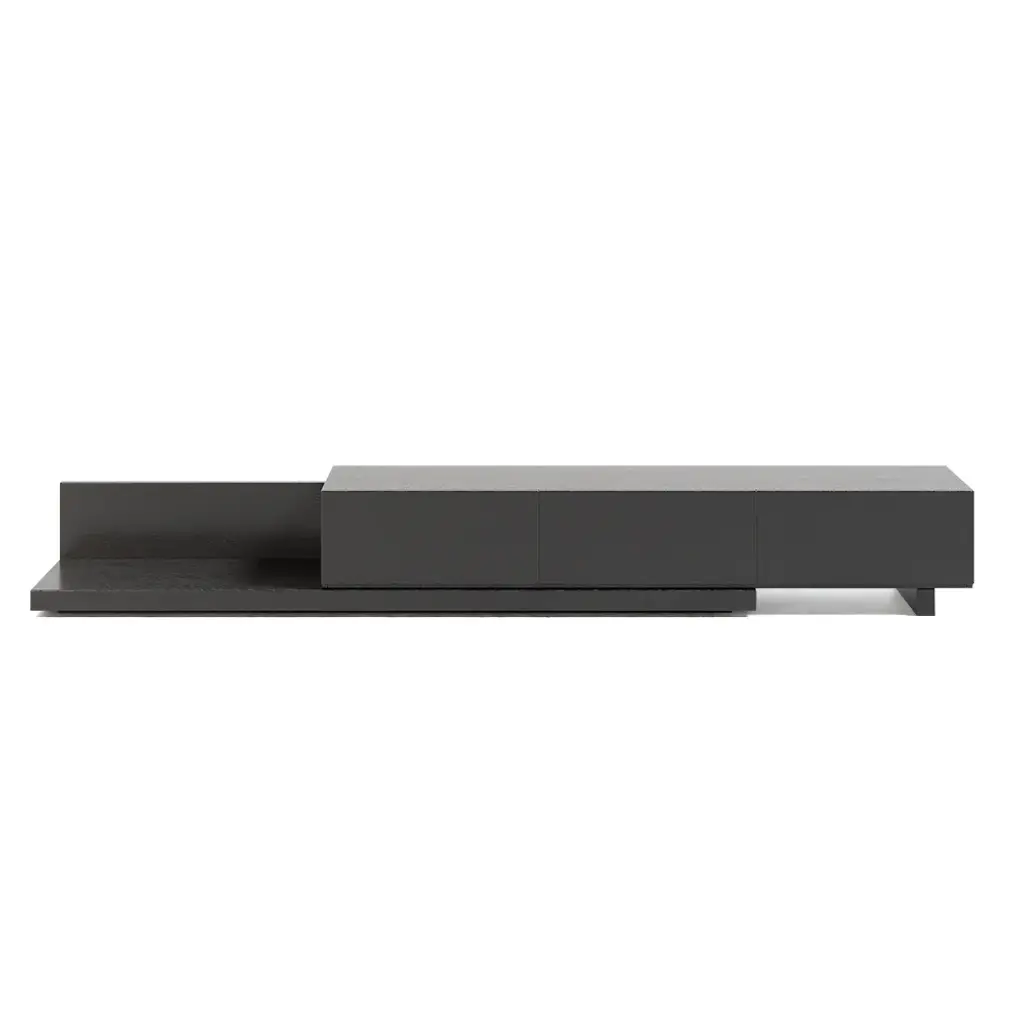 It's a contemporary TV stand with the extendable feature to adjust the length versatile for living room layouts and fitting larger TVs. This media console is perfect for the modern living room-it's functional, elegant in design, and has ample storage for media accessories to enhance your home's aesthetic.