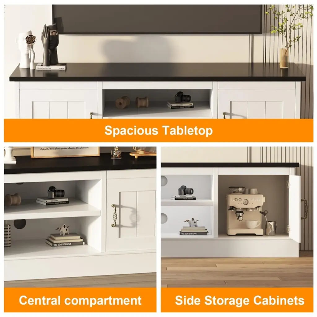 Farmhouse Tv Stand For 65 Inch Tvs Entertainment Center With Storage Cabinets Modern Media Console Table For Living Room Office