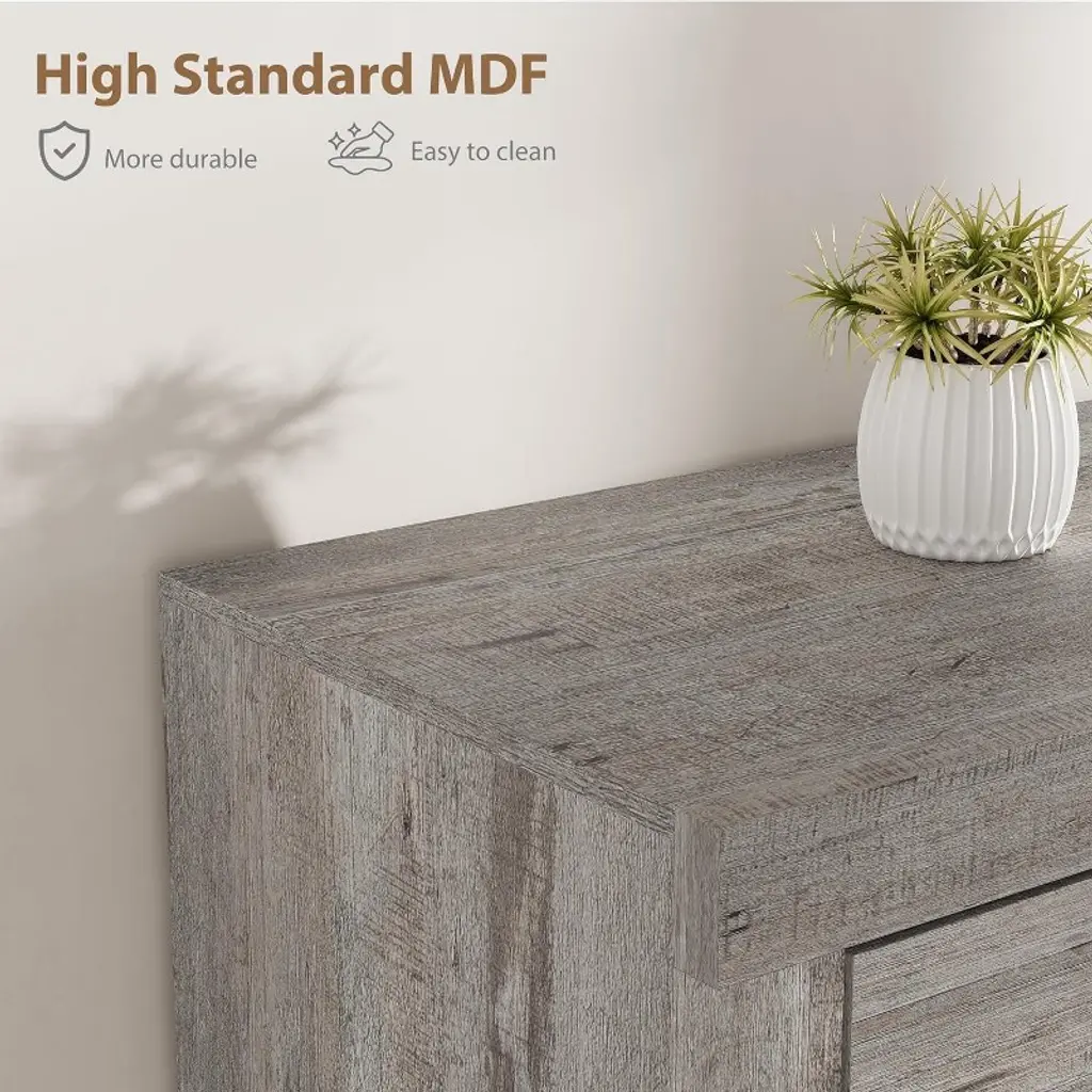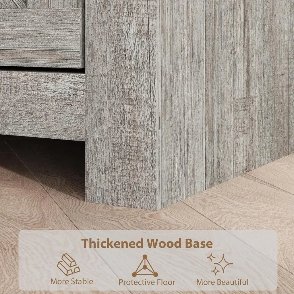 Add rustic charm and functional storage to your home with the Farmhouse TV Stand, designed to support TVs up to 80 inches. This 70.1-inch wide entertainment center blends antique white wood tones with clean lines and practical details, offering a perfect centerpiece for your living room, bedroom, or den. With a sturdy engineered wood frame and strong top panel that holds up to 400 pounds, you can confidently place large TVs and decor on top.The console features four drop-down flap drawers, three open shelves, and two open side compartments—ideal for organizing game consoles, DVD players, remote controls, books, and more. The upgraded flap doors provide a smoother experience than traditional drawers, supported by premium hinges tested for long-term durability.This TV stand comes with labeled parts and clear instructions for quick and accurate assembly by 1–2 people. Shock-absorbing foam and reinforced packaging ensure safe delivery, so your new centerpiece arrives in perfect condition.
