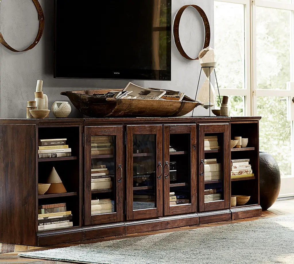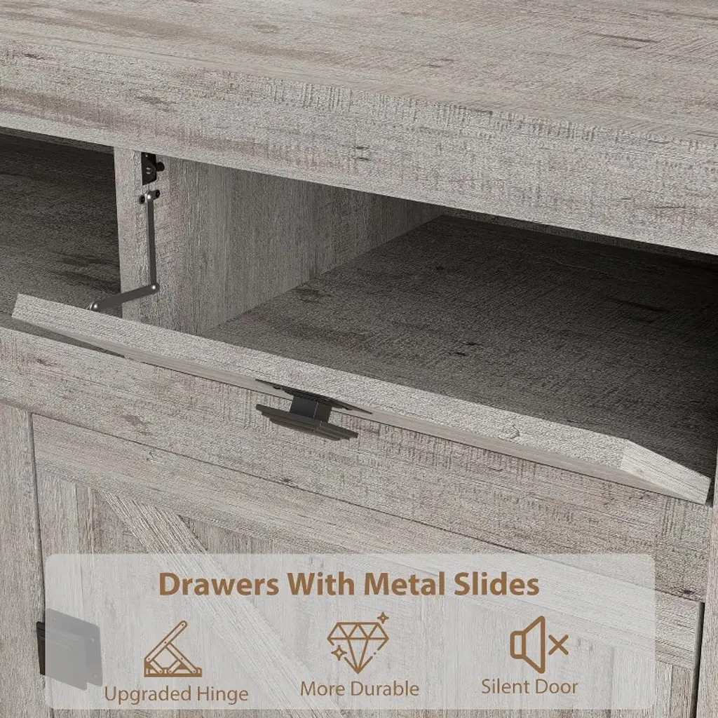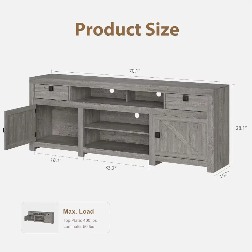 Farmhouse Tv Stand For 80 Inch Tvs, 70" Entertainment Center With Drawers And Open Shelves
